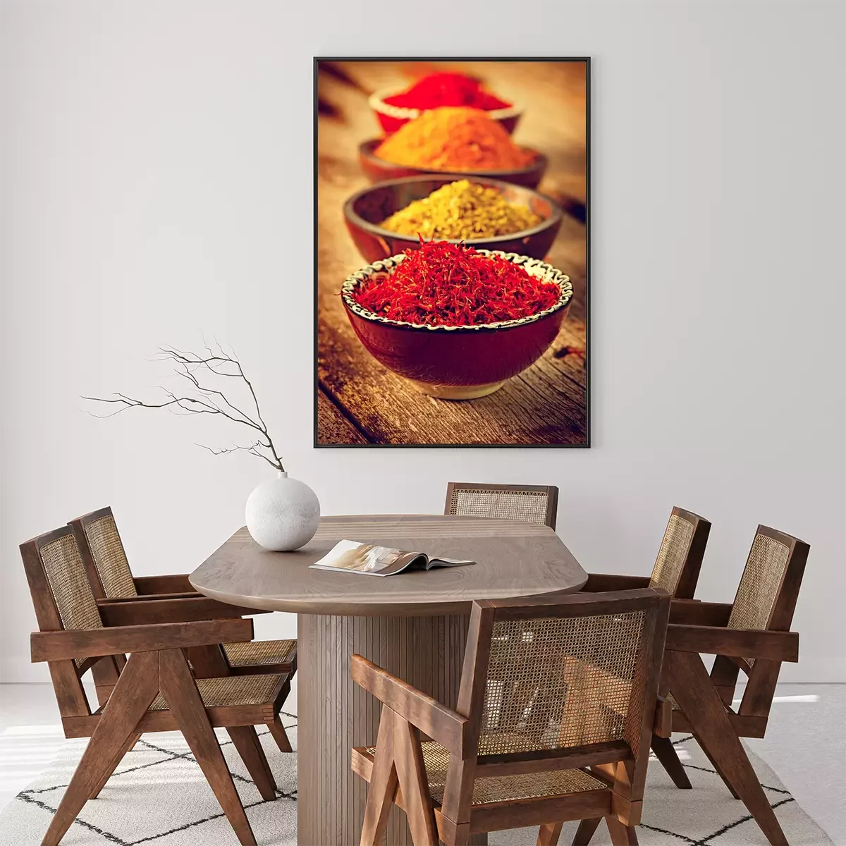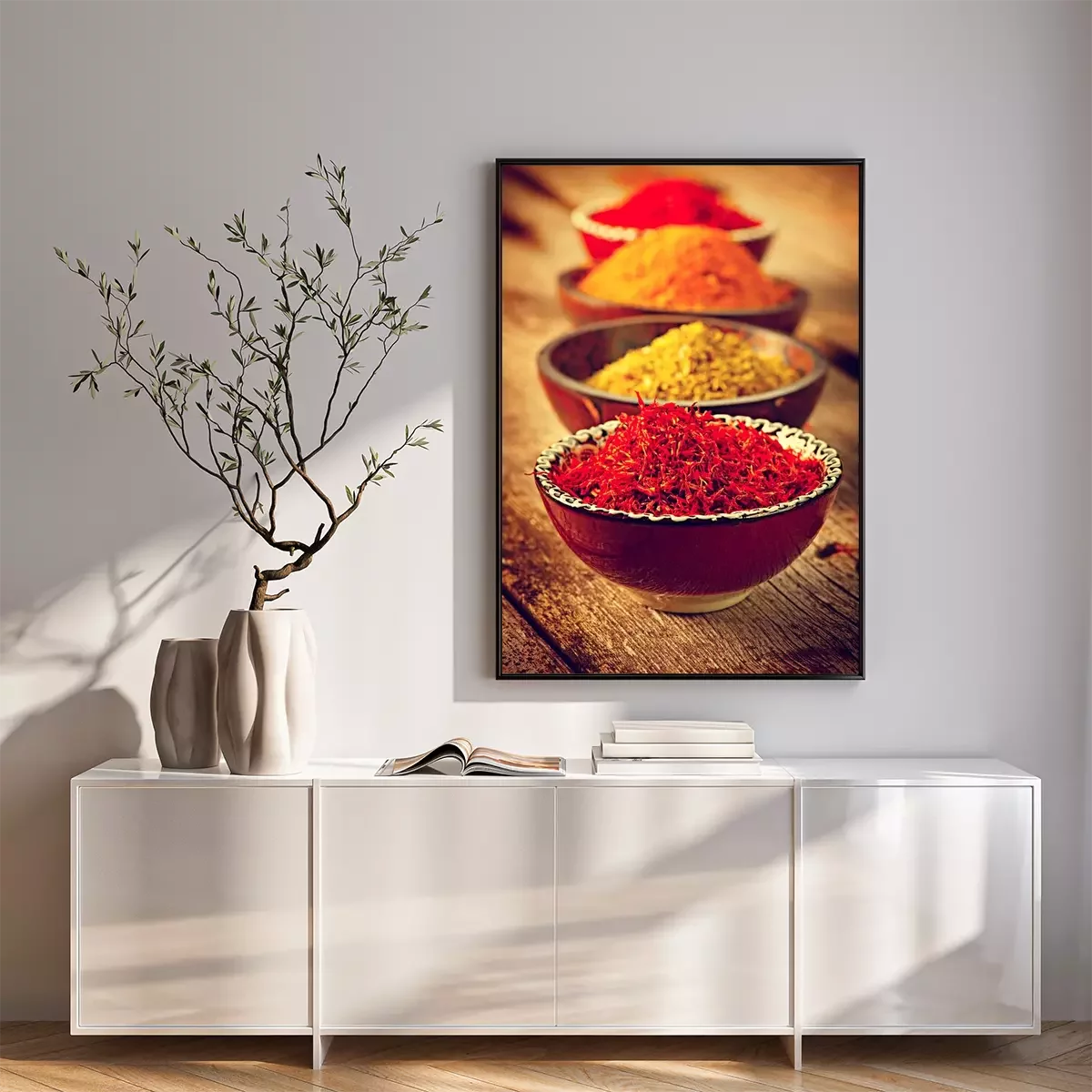 Poster  Pimenter. Divers, épices, sur, bois, fond