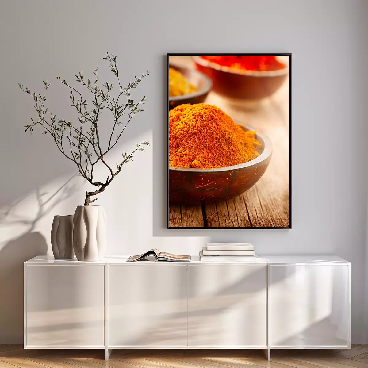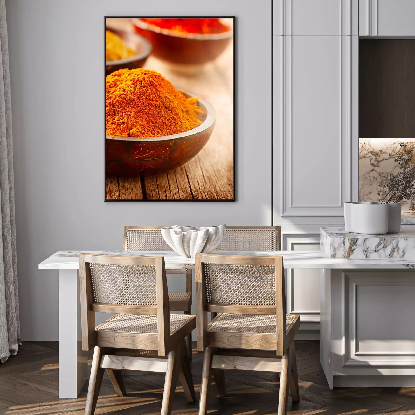 Poster  Pimenter. Divers, épices, sur, bois, fond