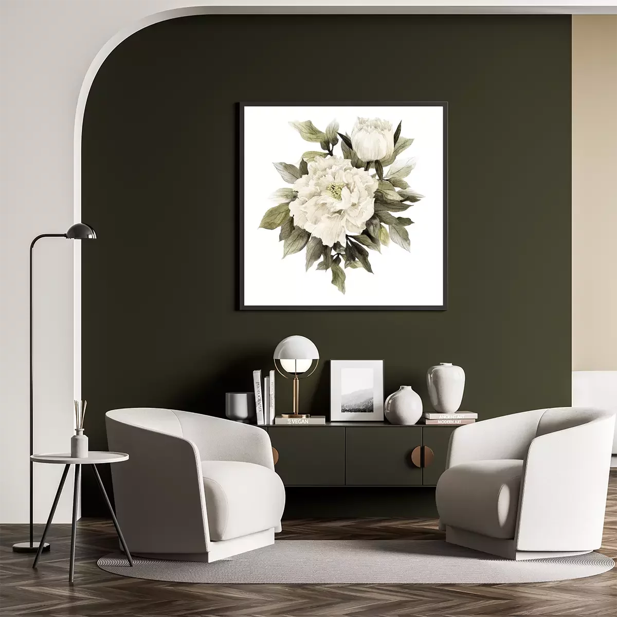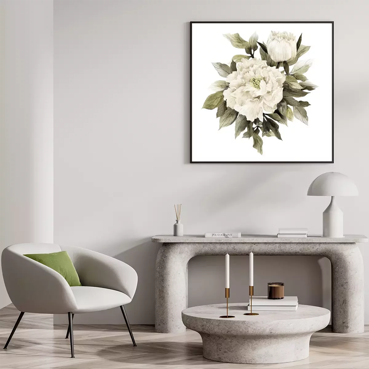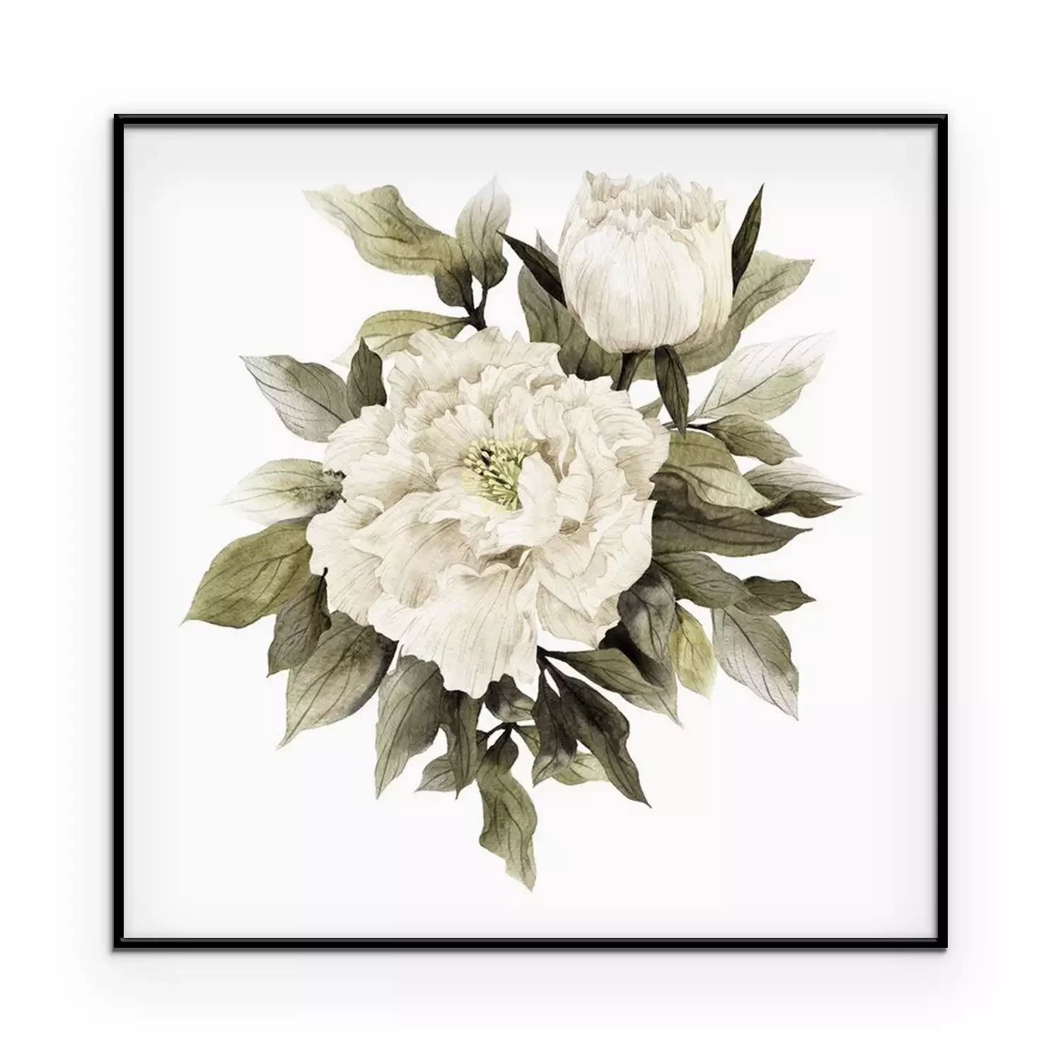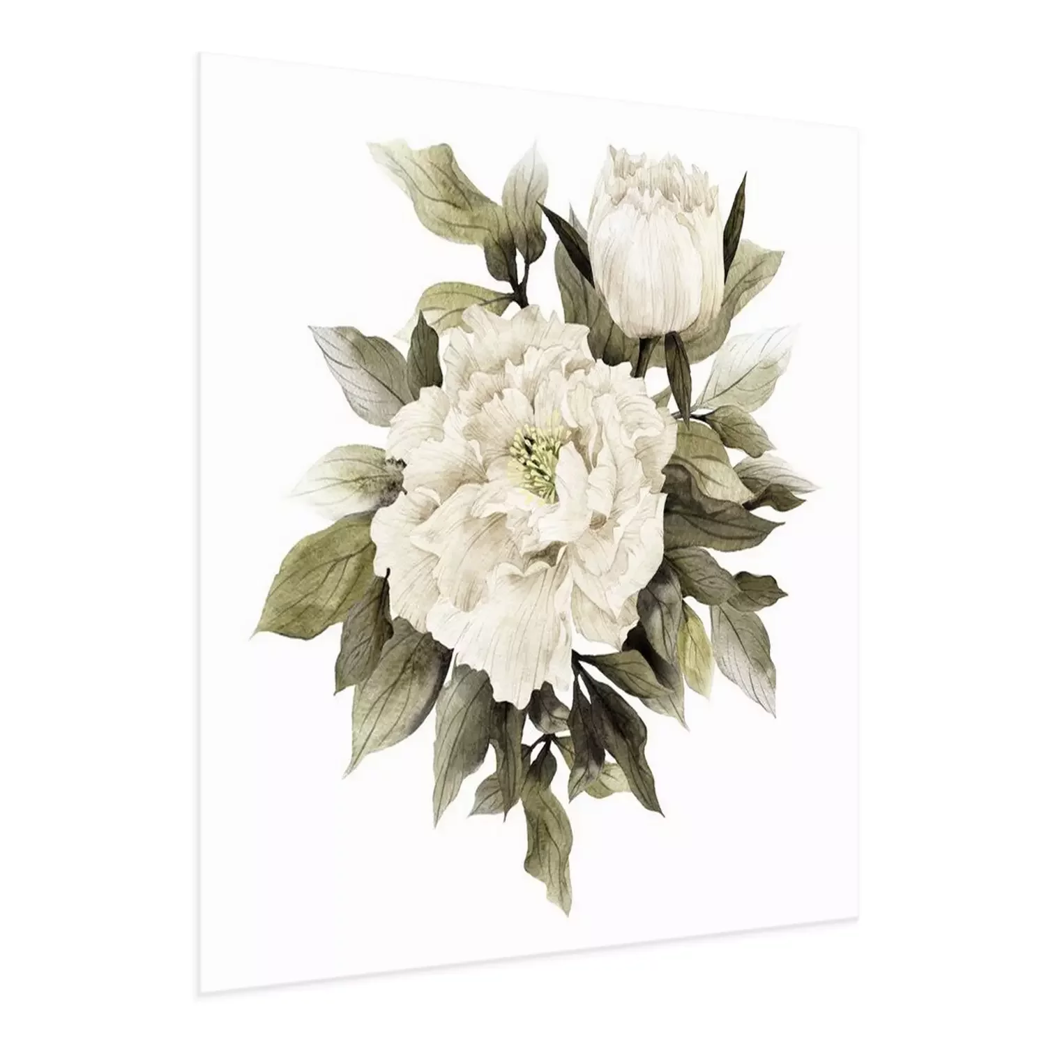 Poster  Pivoines blanches peintes avec la technique de l'eau