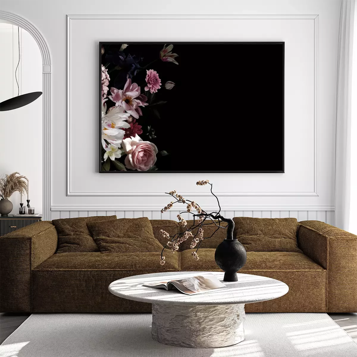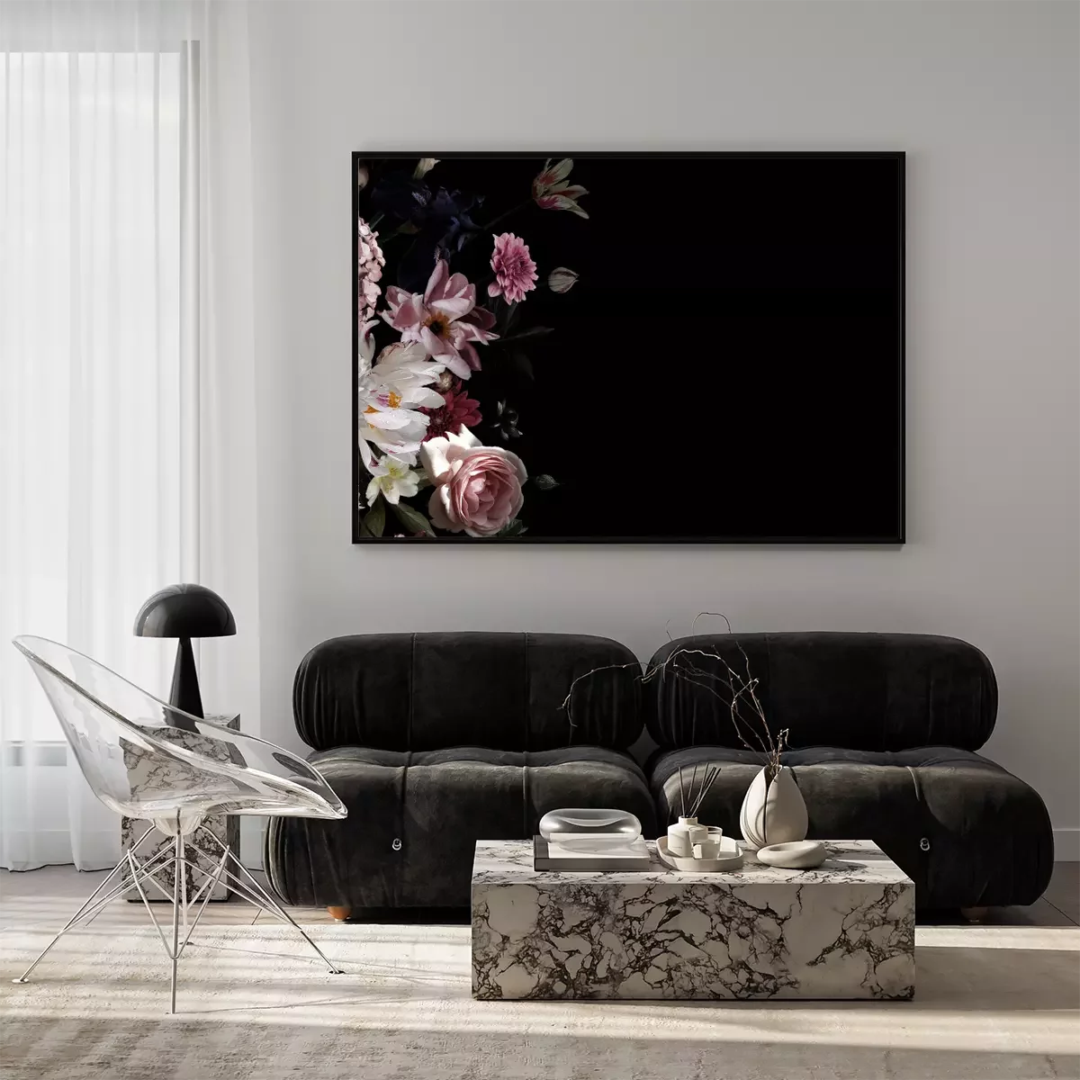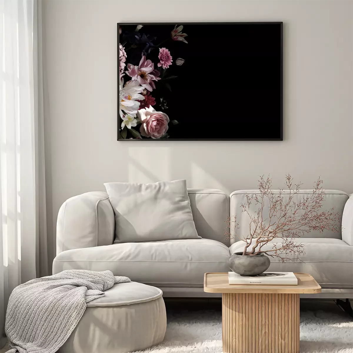 Poster  Pivoines dans l'obscurité de la noirceur enveloppante