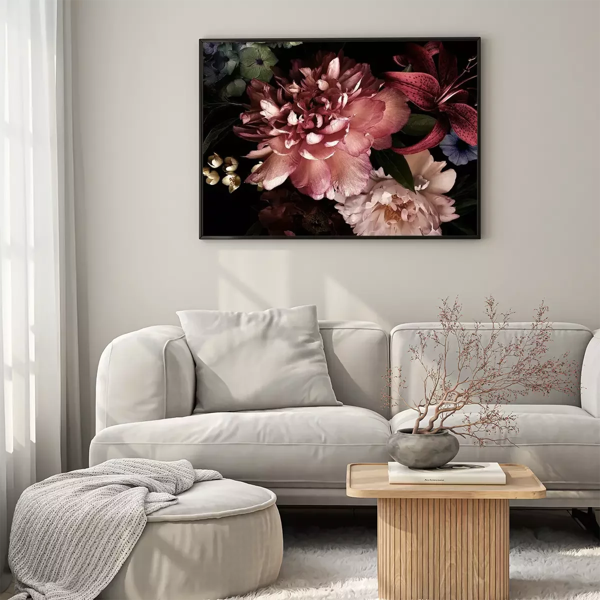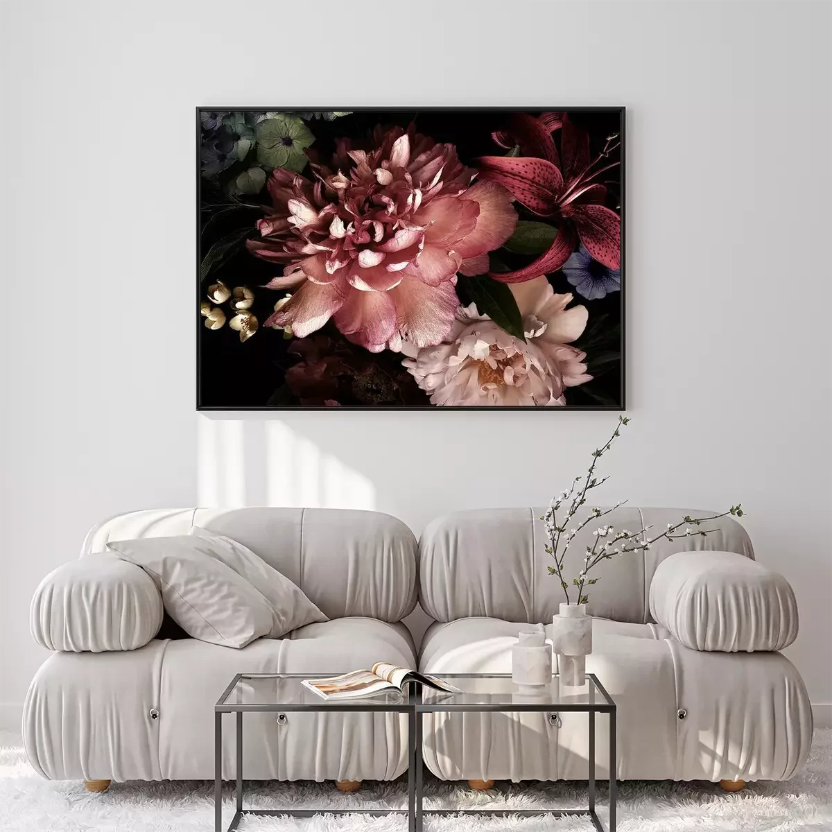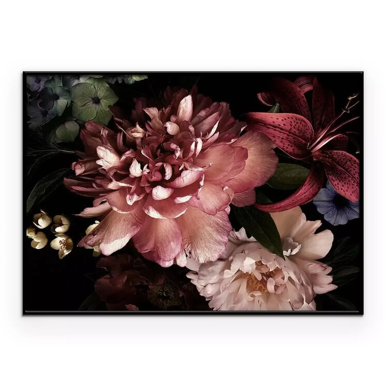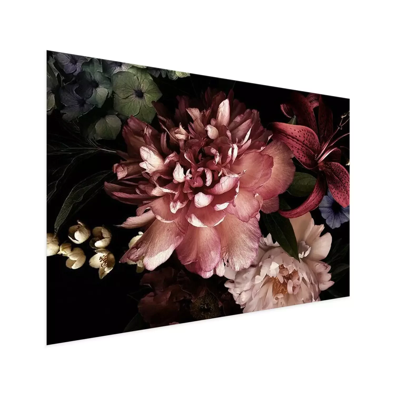 Poster : Pivoines dans l'obscurité du noir profond