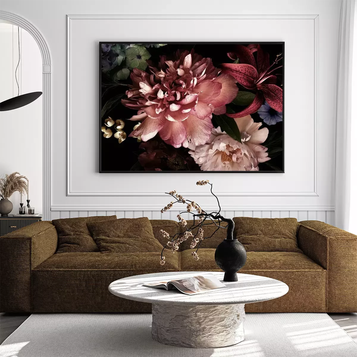 Poster  Pivoines dans l'obscurité du noir profond