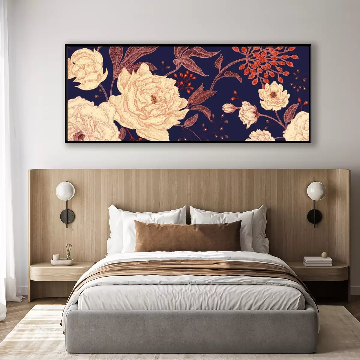 Poster : Pivoines et brindilles d'or avec les boules rouges