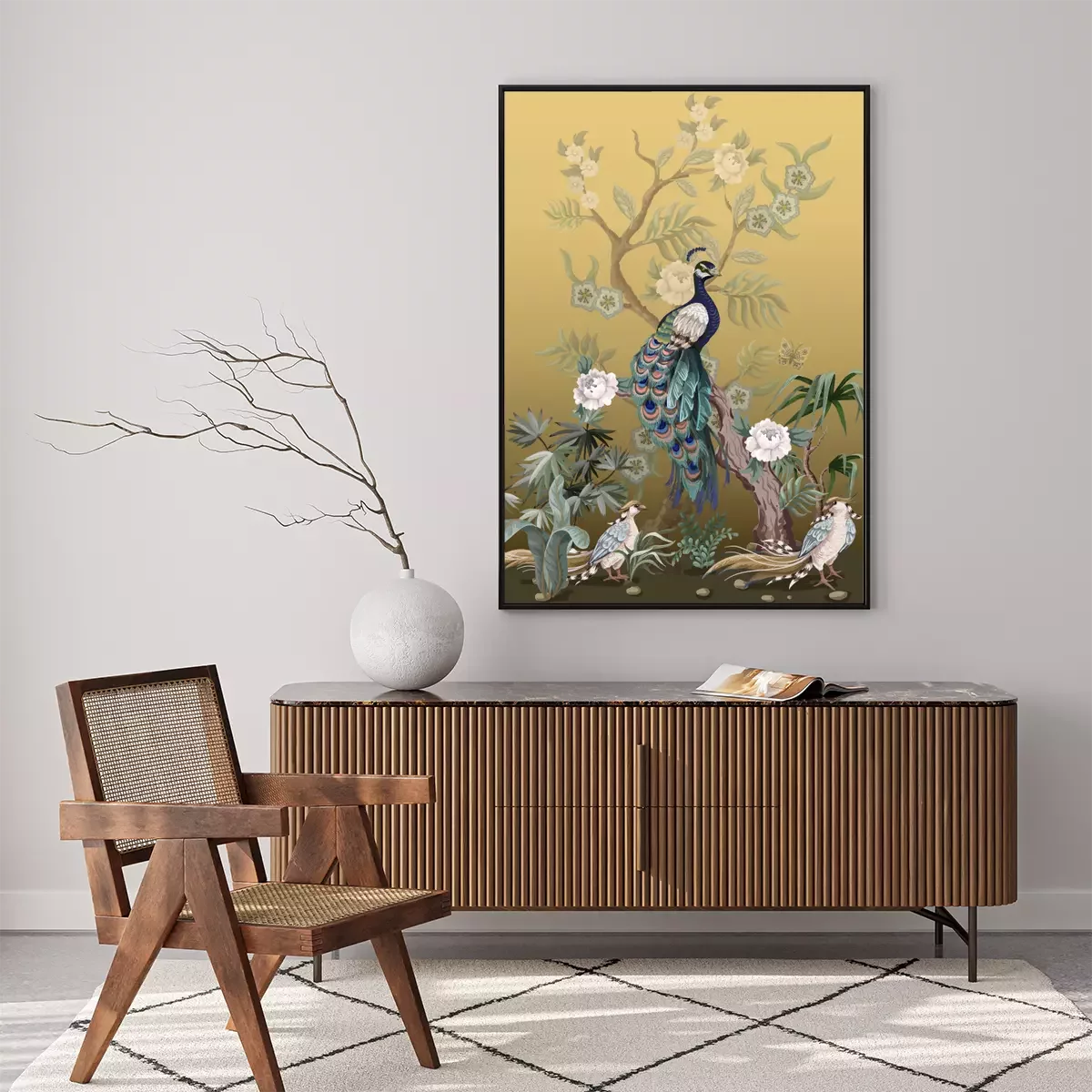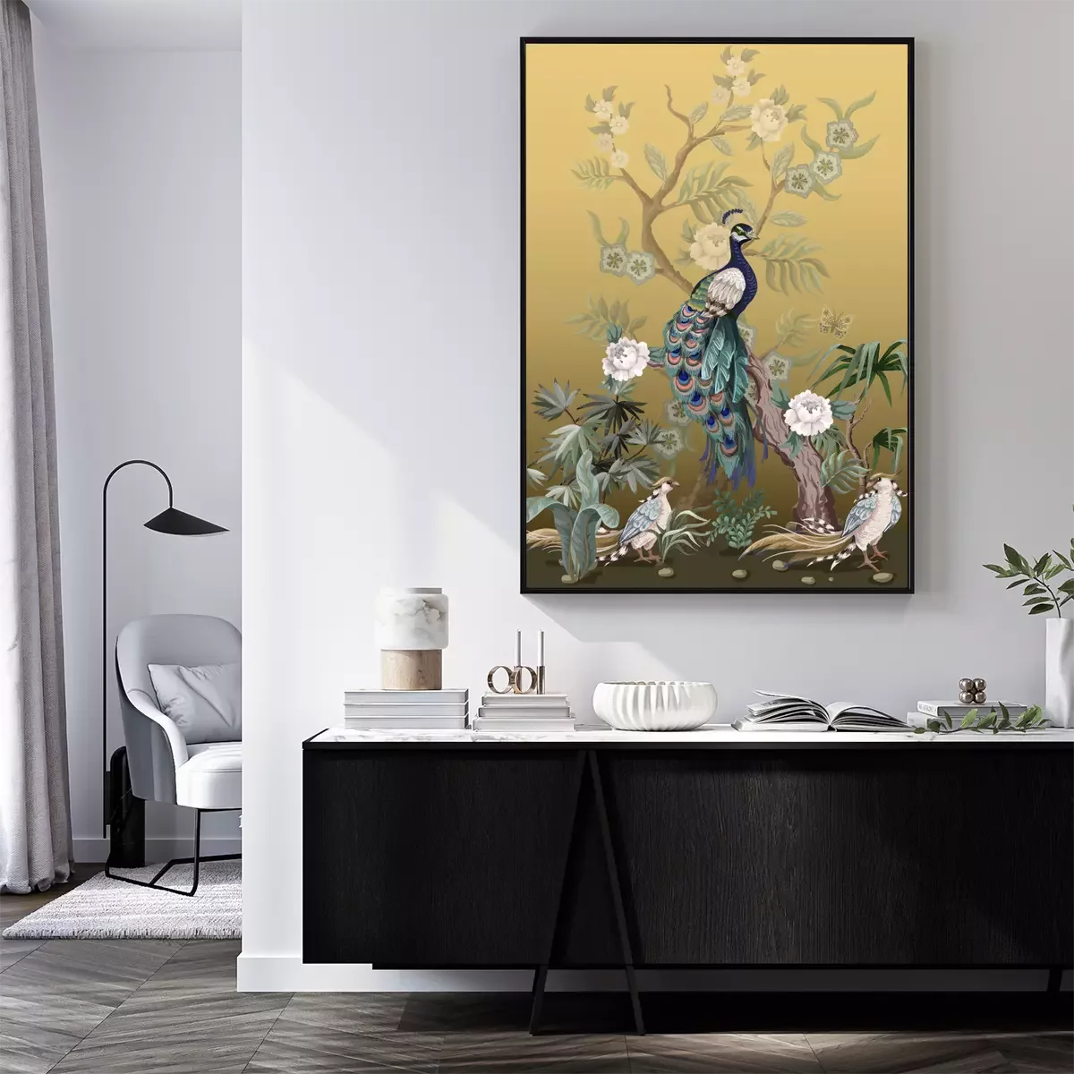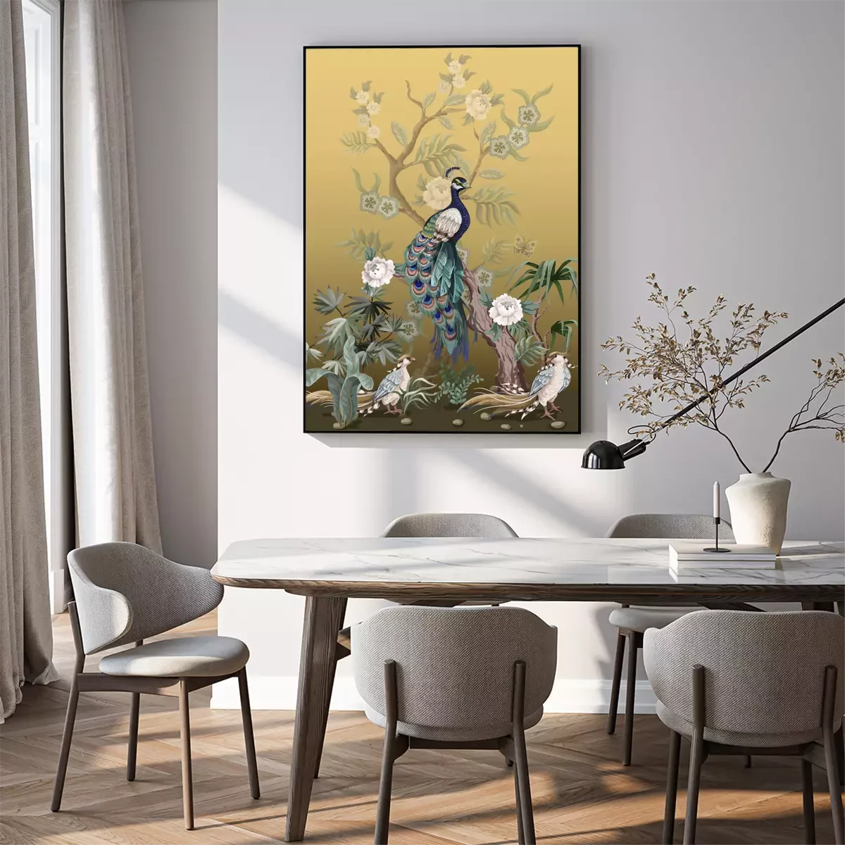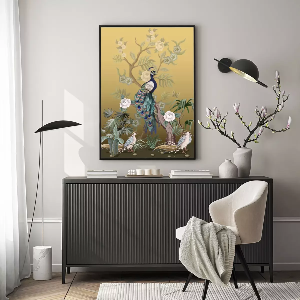 Poster : Pivoines et paons à la japonaise