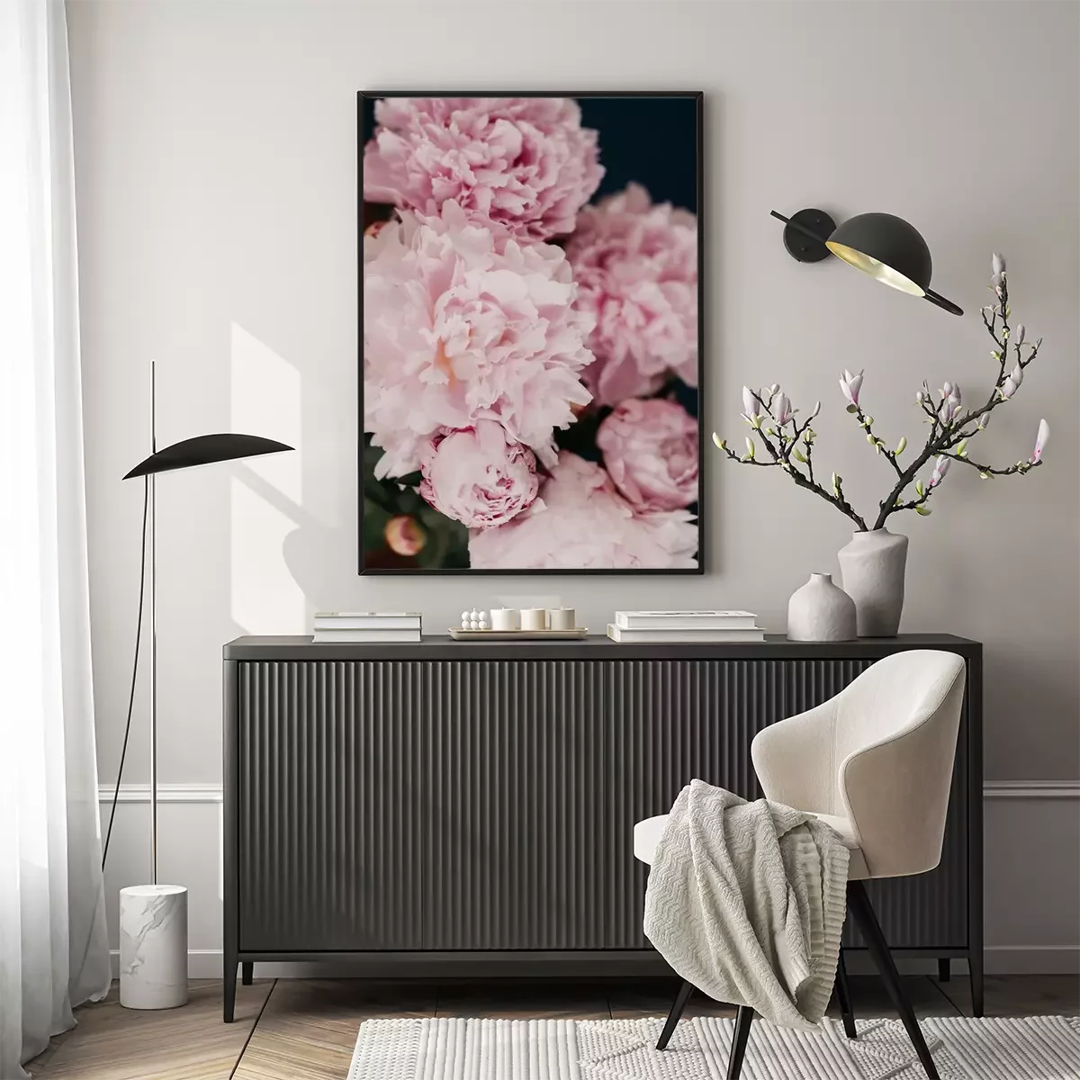 Poster  Pivoines roses aux pétales déchirés