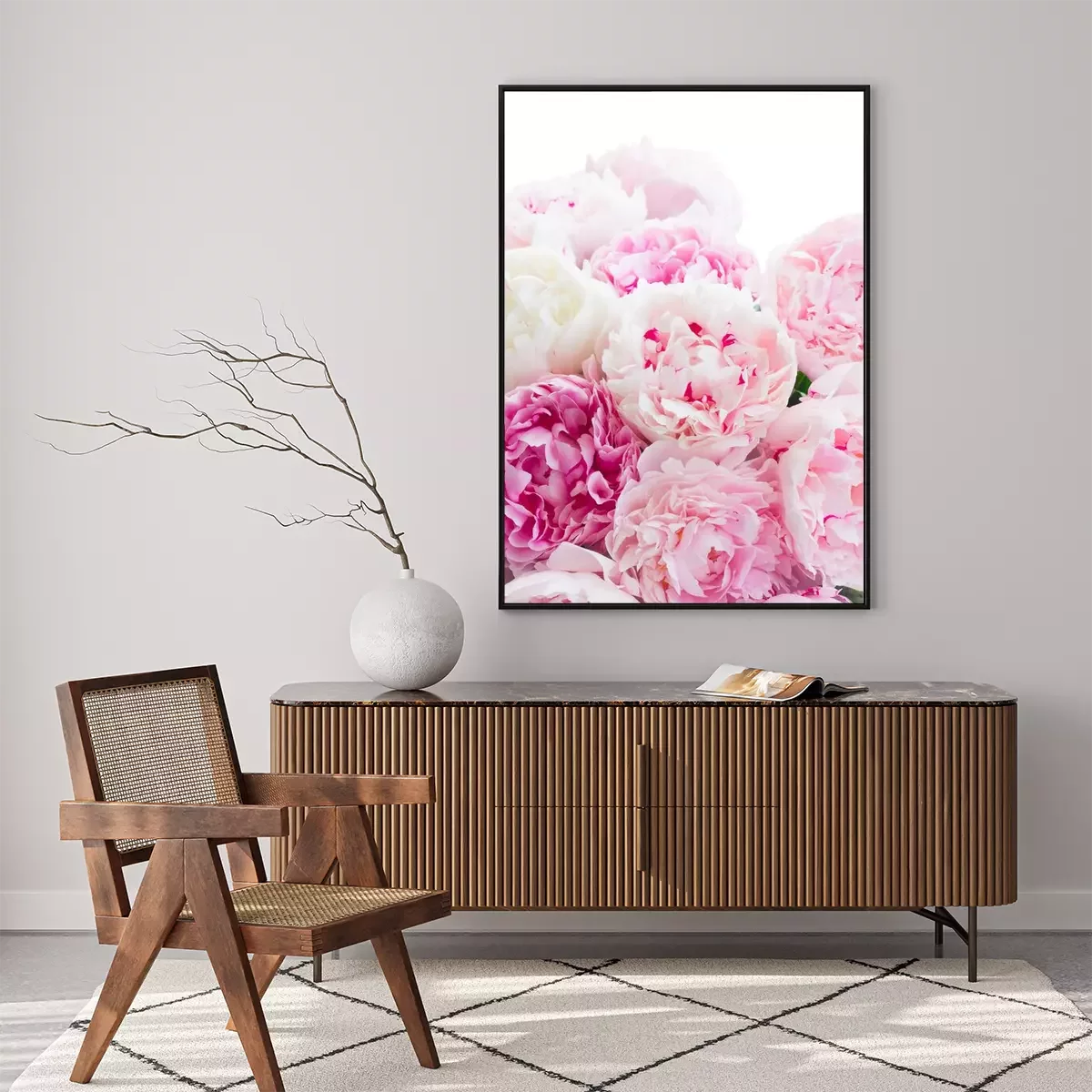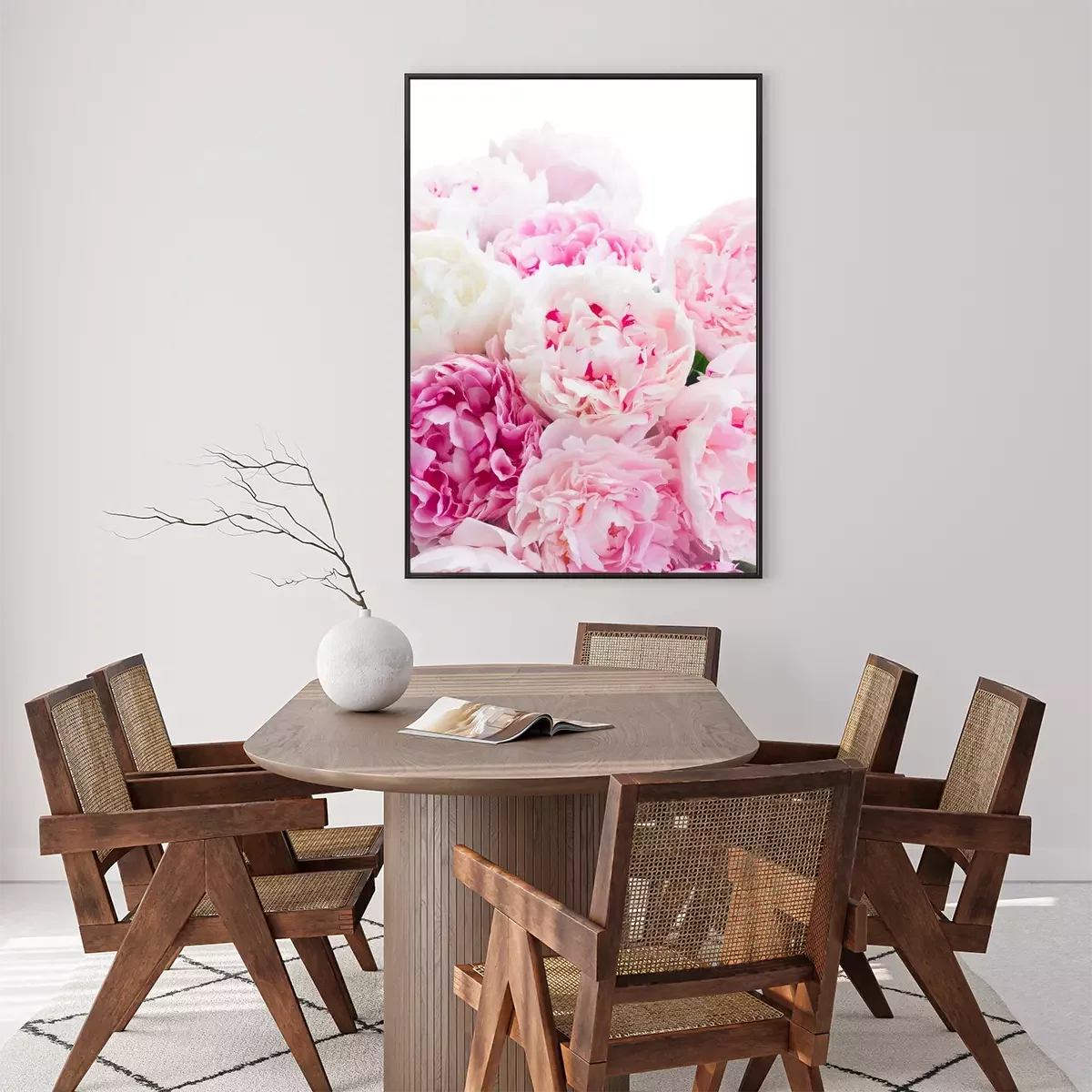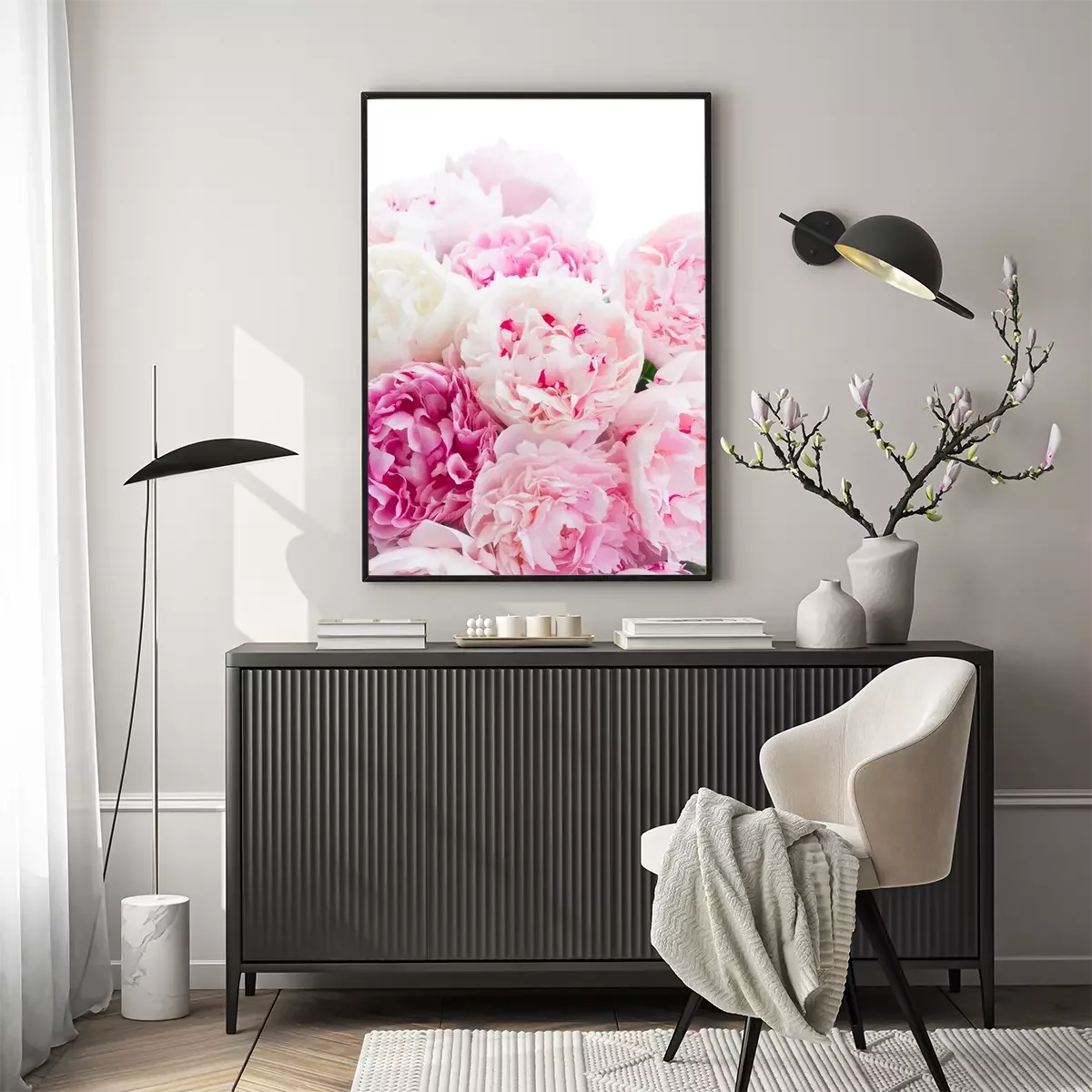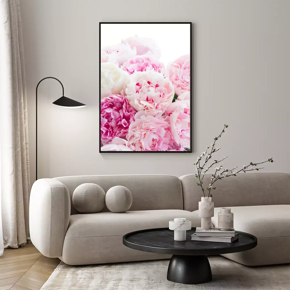 Poster : Pivoines roses et blanches empilées les unes sur les autres