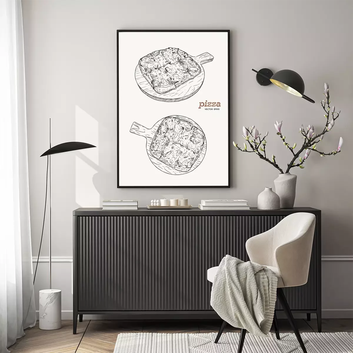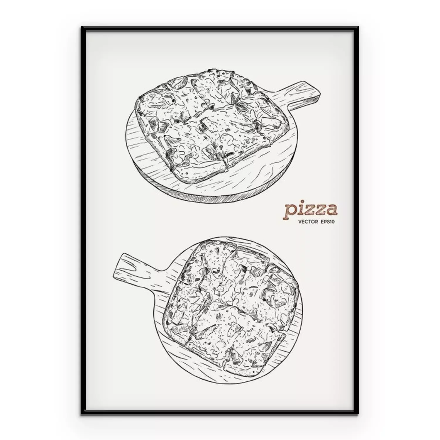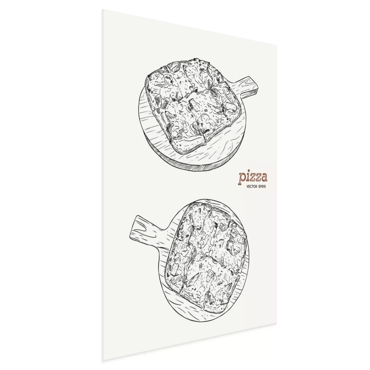 Poster  Pizza sur la planche de bois main dessiner le vecteur de croquis.