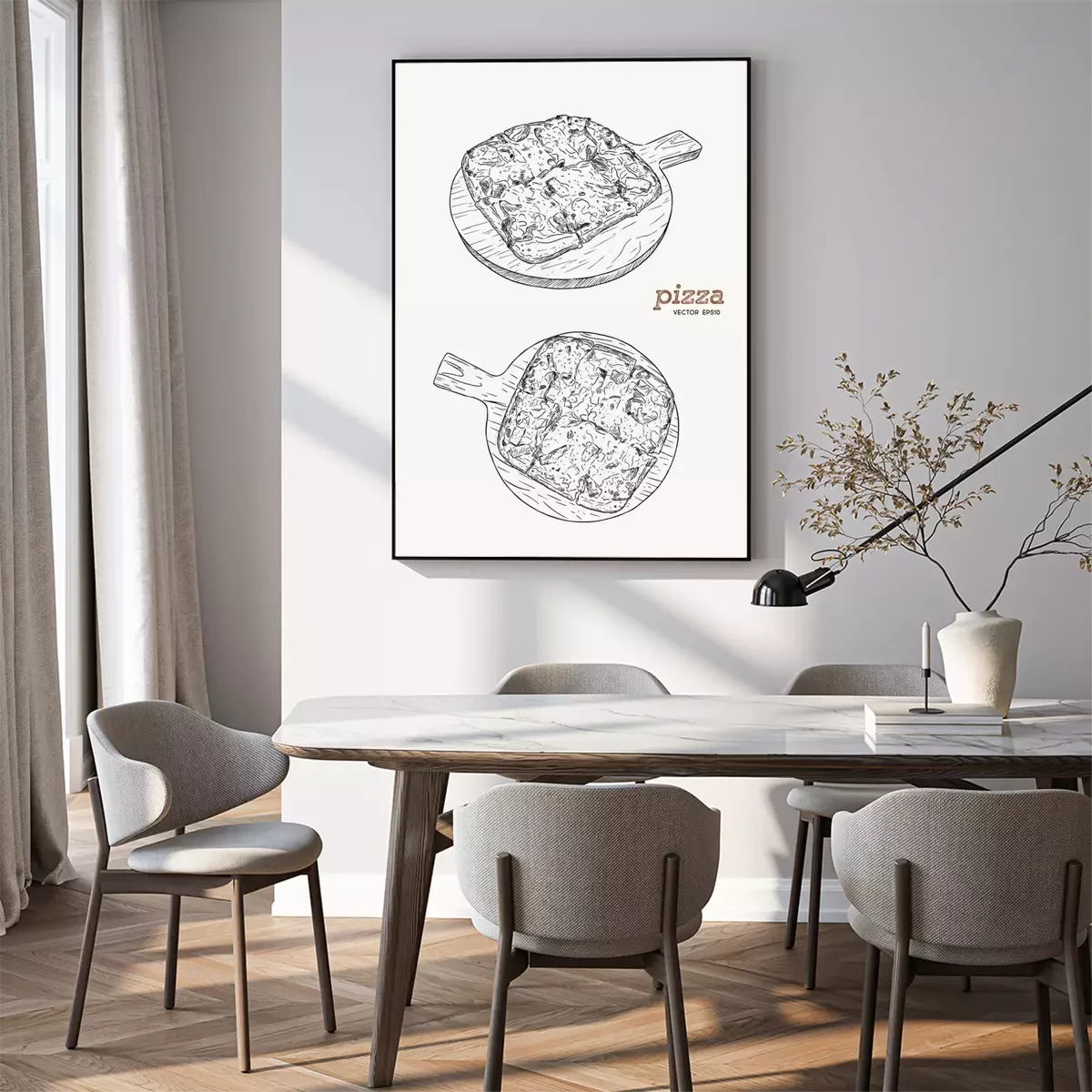 Poster : Pizza sur la planche de bois main dessiner le vecteur de croquis.