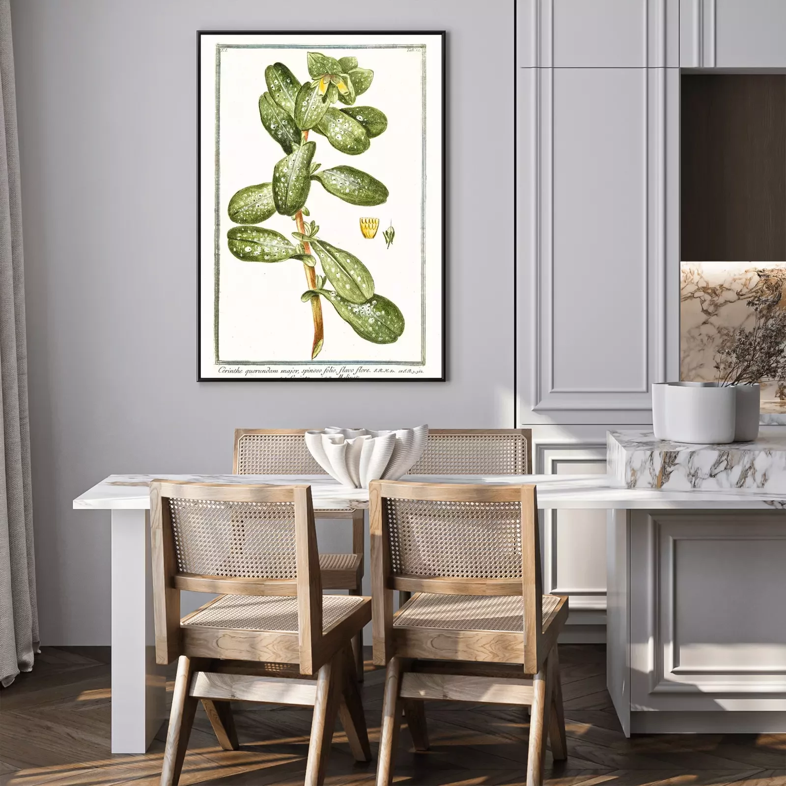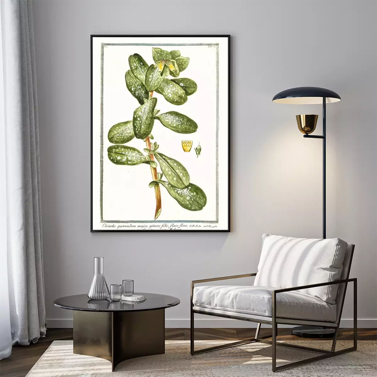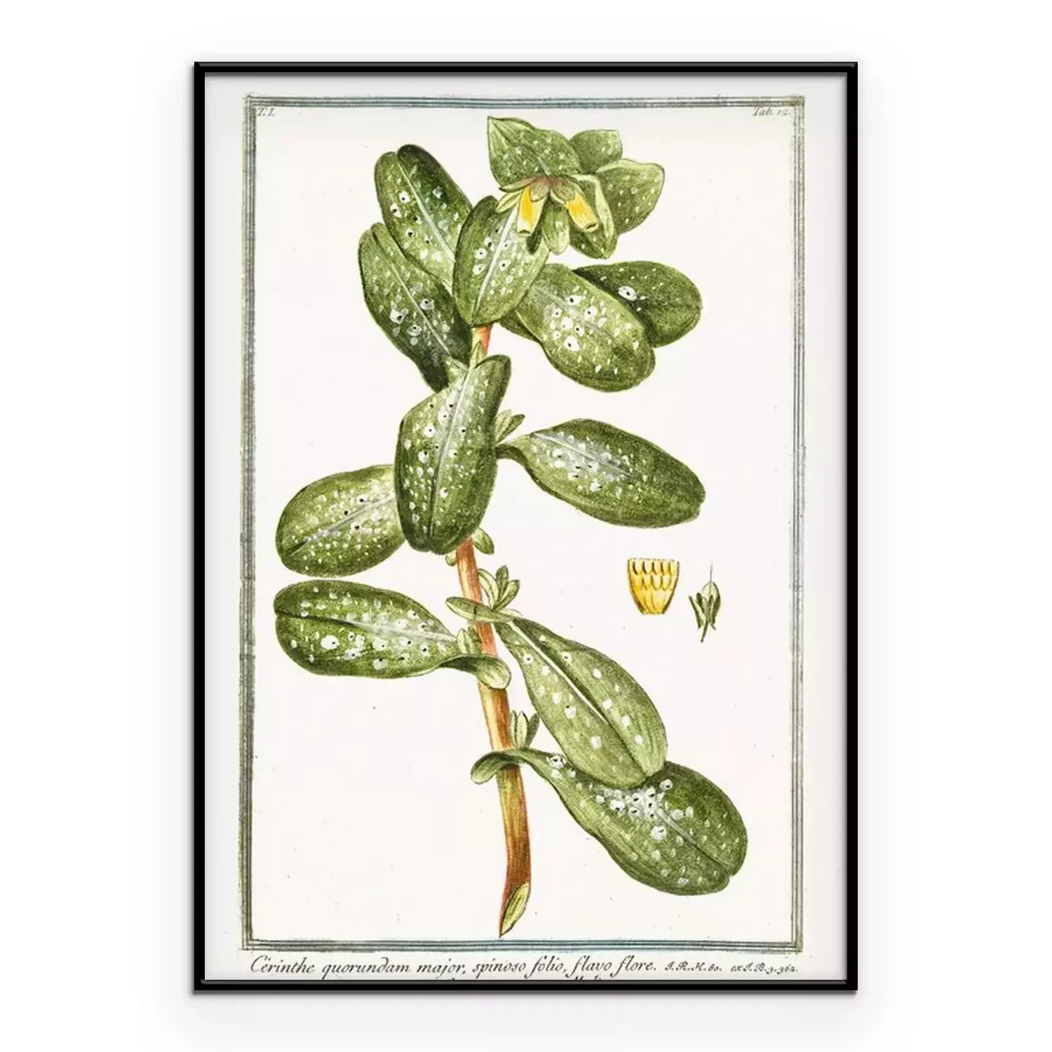 Gravure d'une plante exotique dans un cadre vert