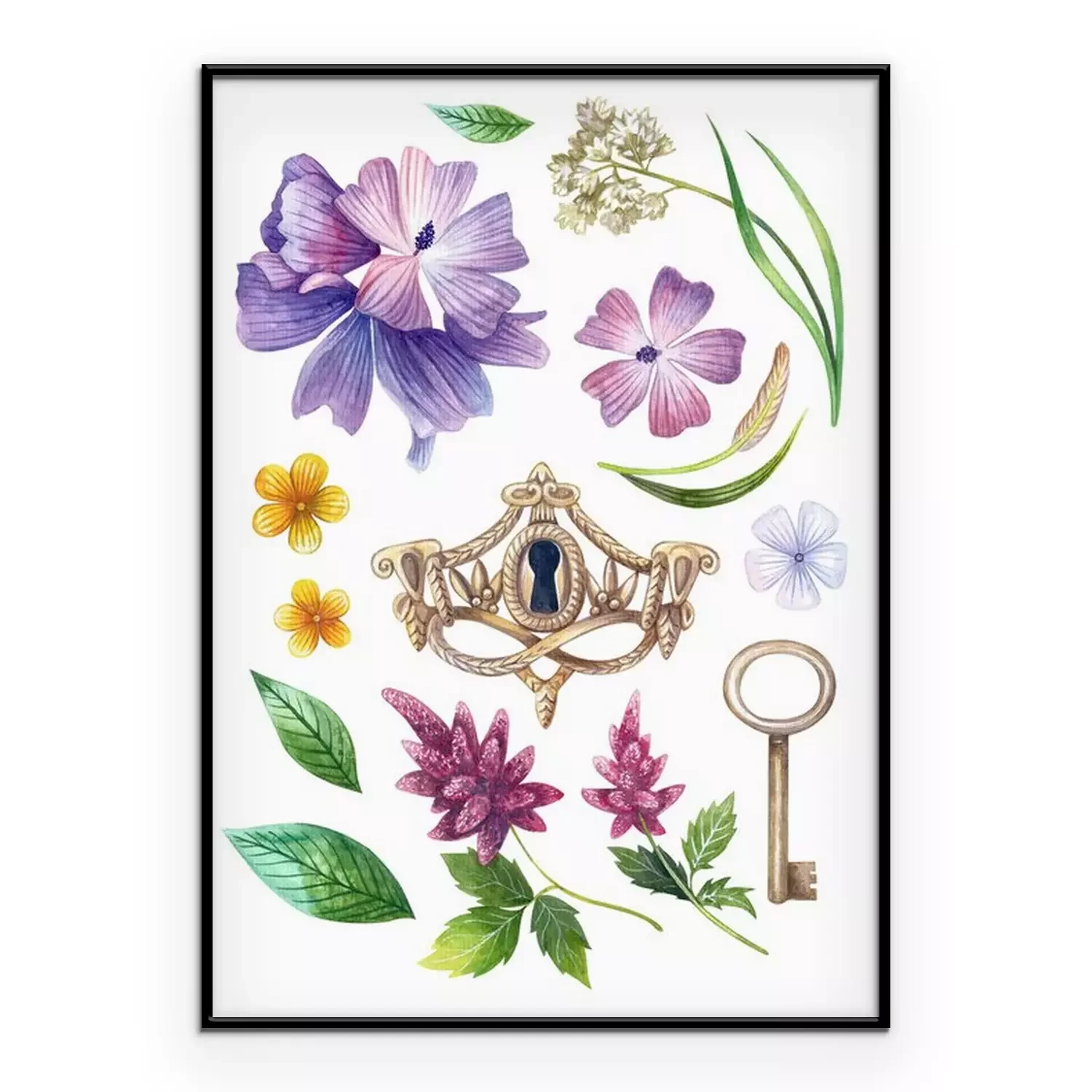 Poster  Plantes de jardin mystérieux avec une clé et un cadenas