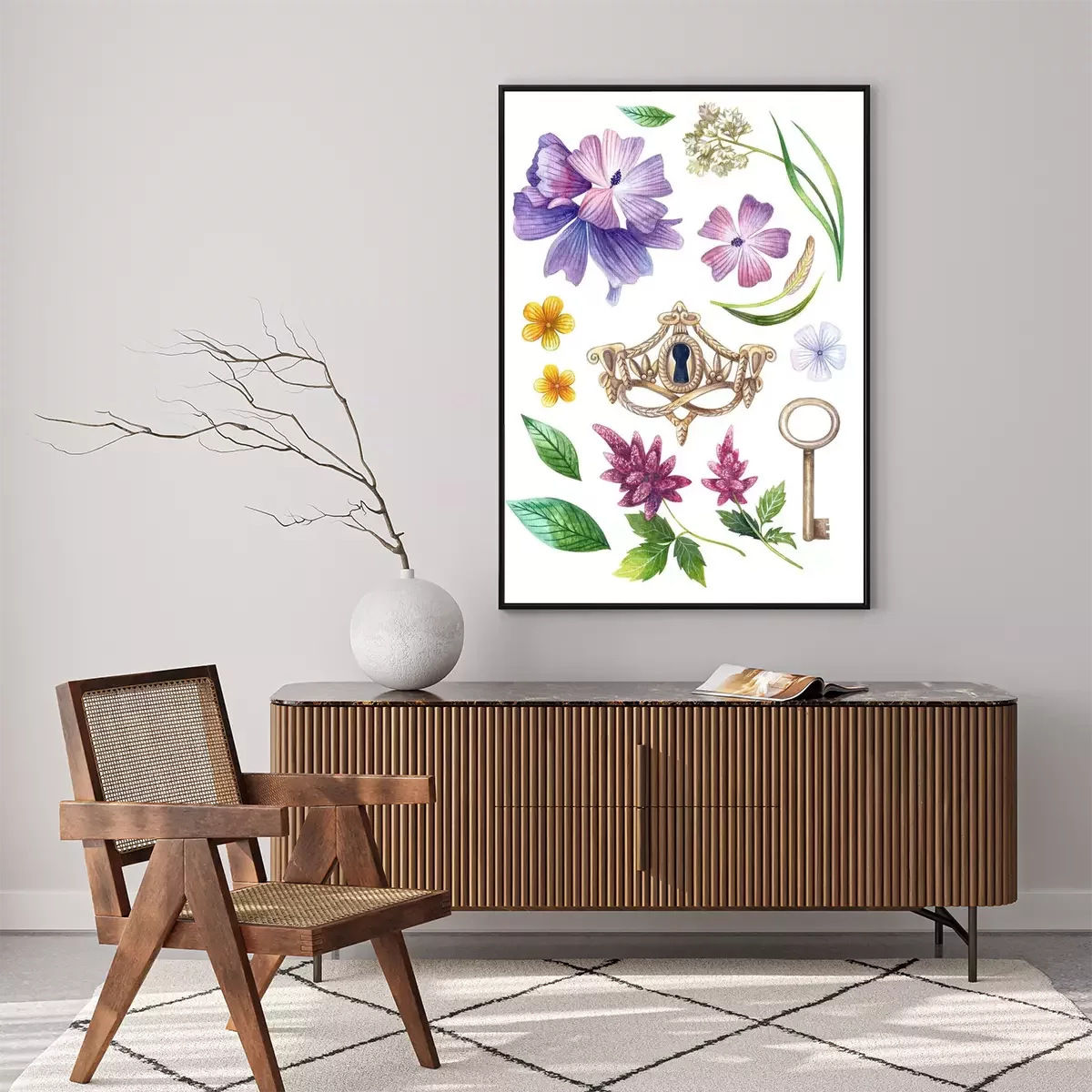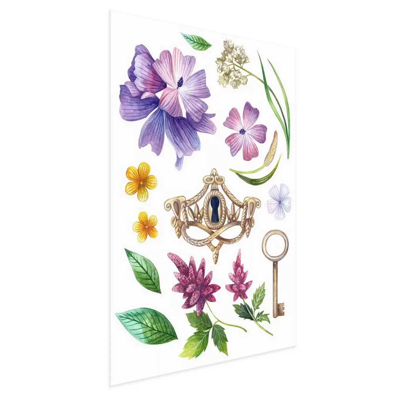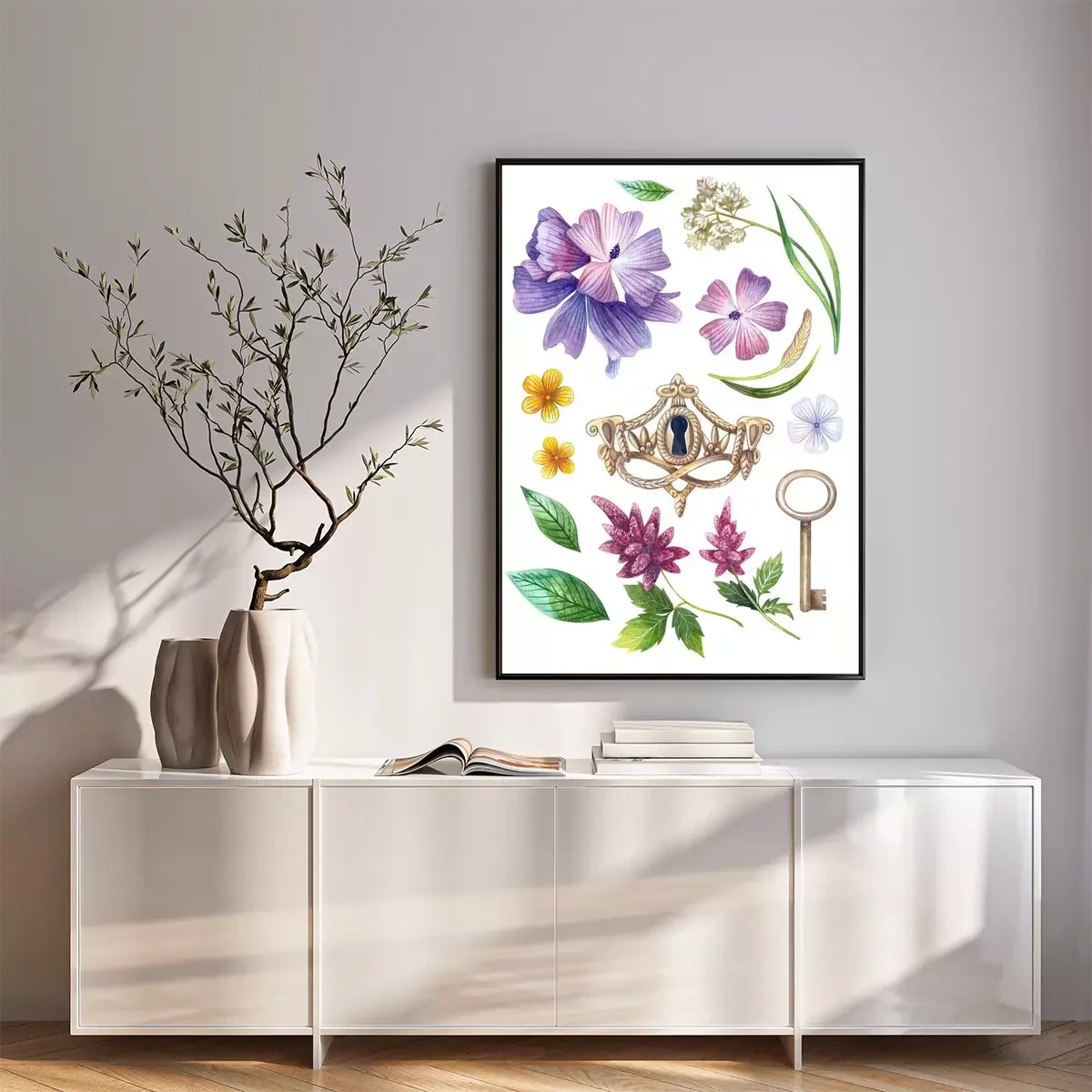 Poster : Plantes de jardin mystérieux avec une clé et un cadenas