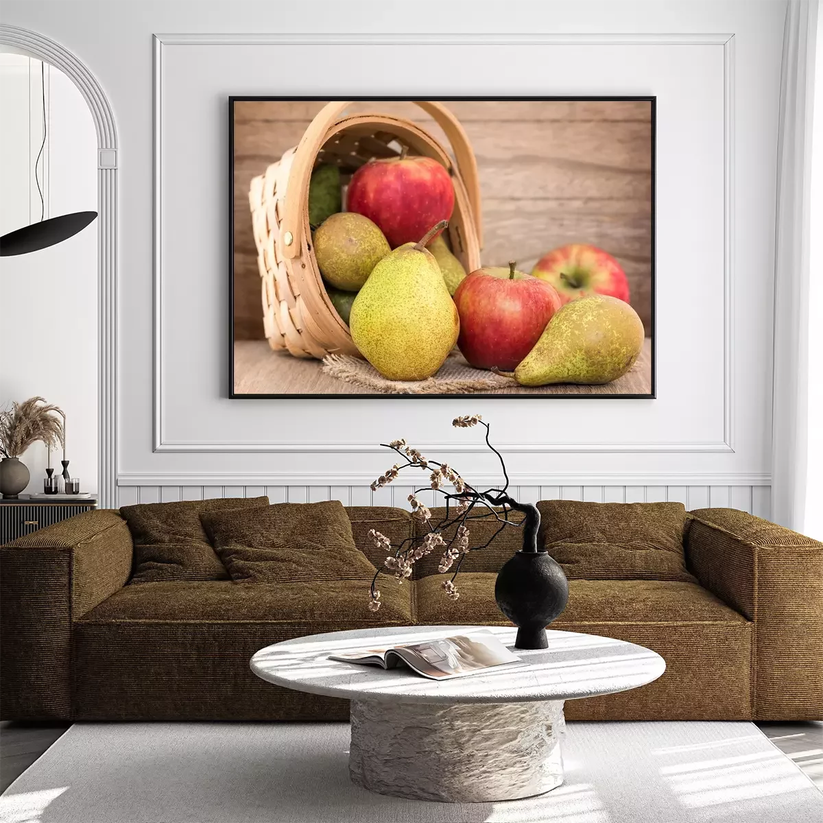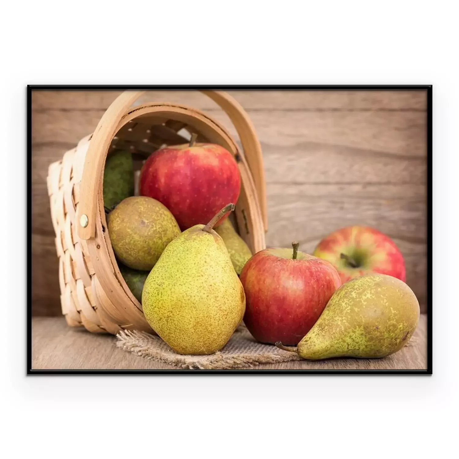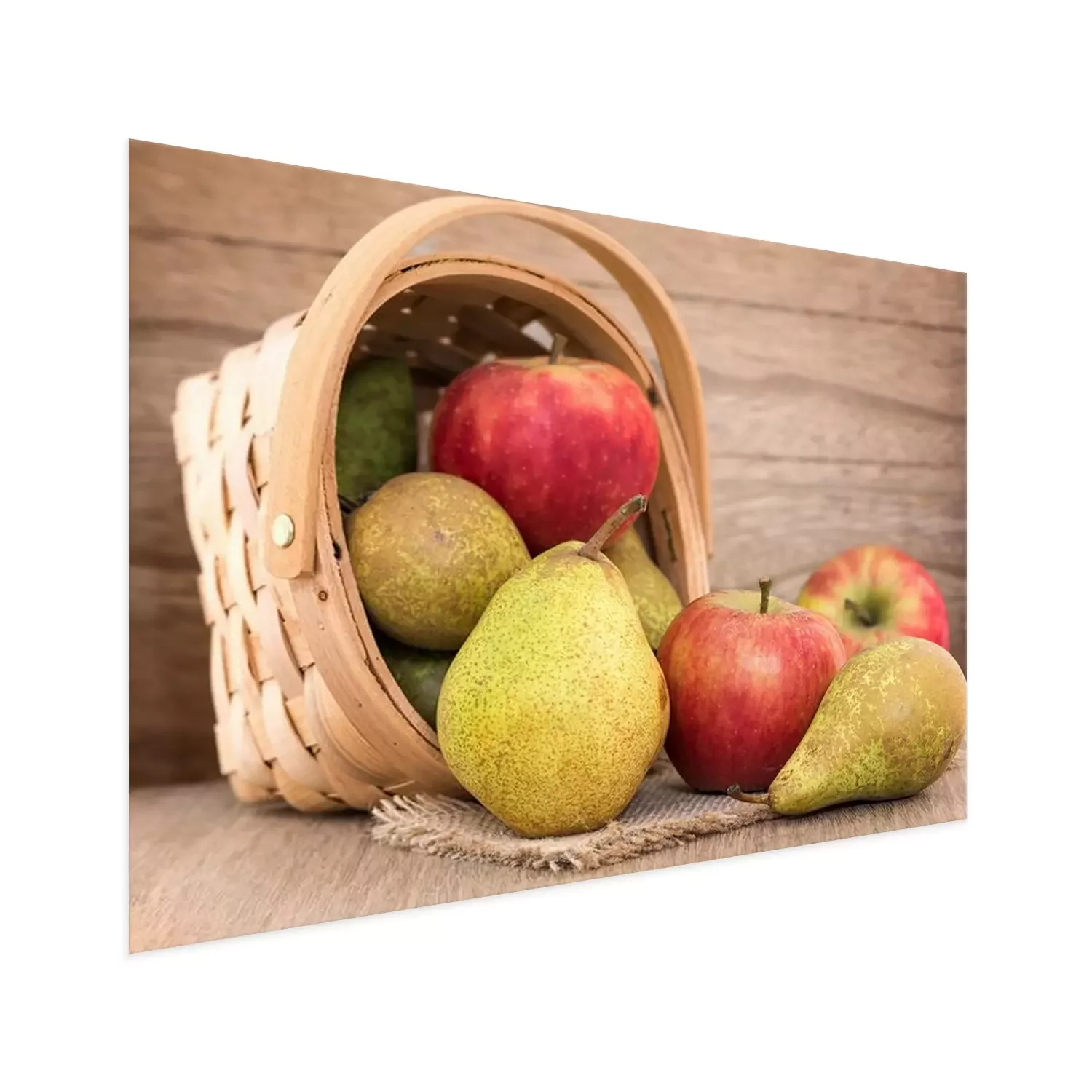 Poster : Poires et les pommes sur la table en bois