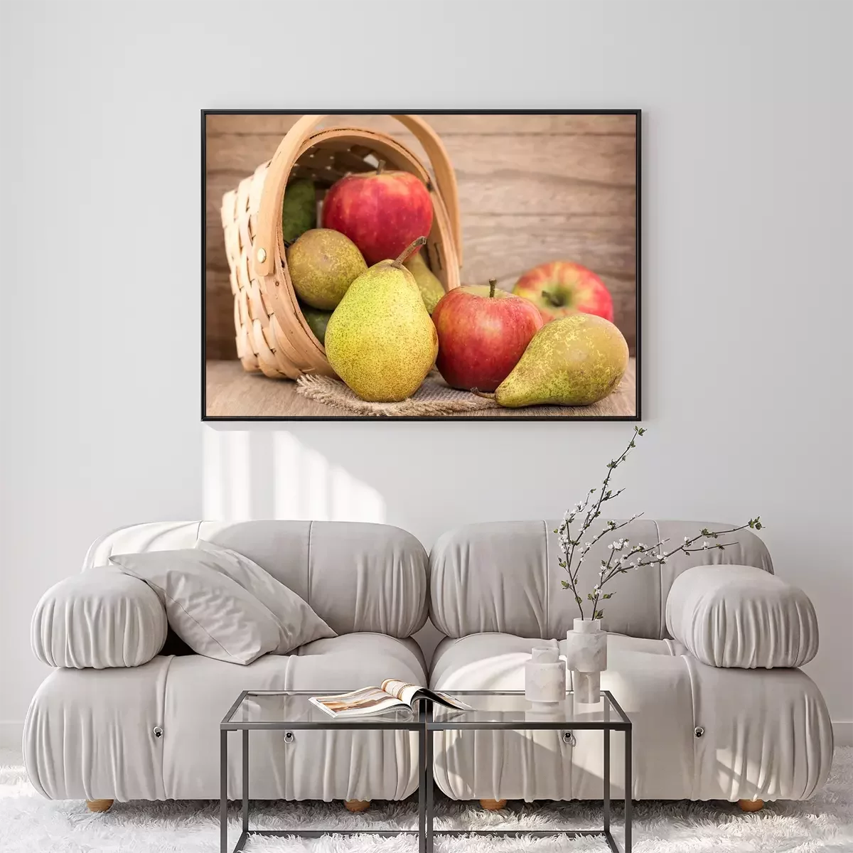 Poster  Poires et les pommes sur la table en bois