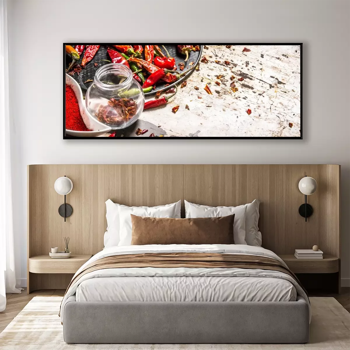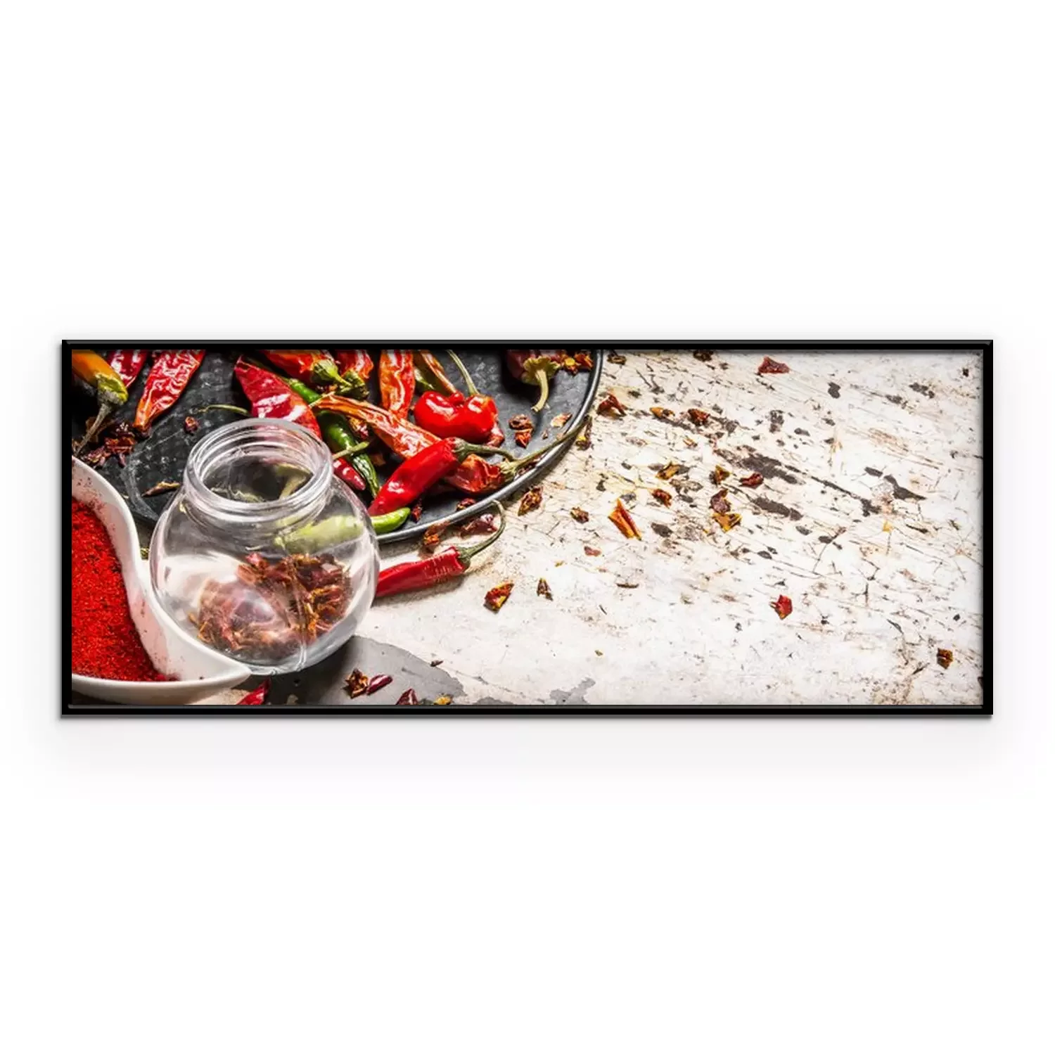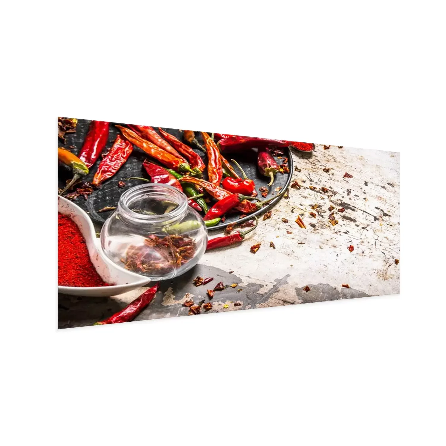 Poster  Poivrons rouges séchés sur un plateau et dans le pot.