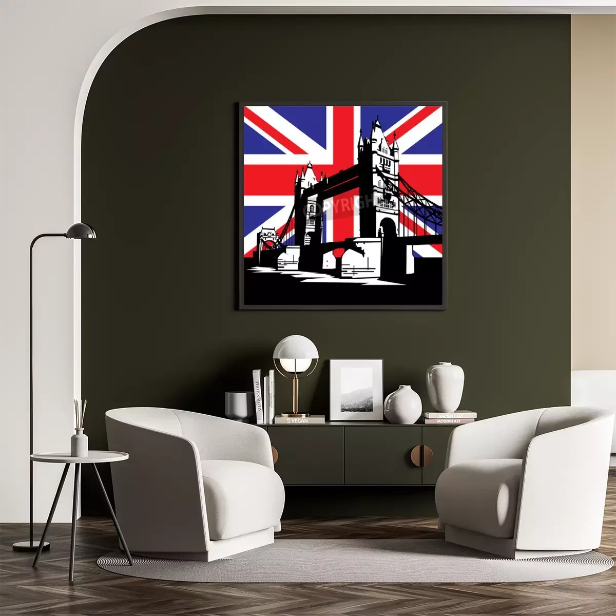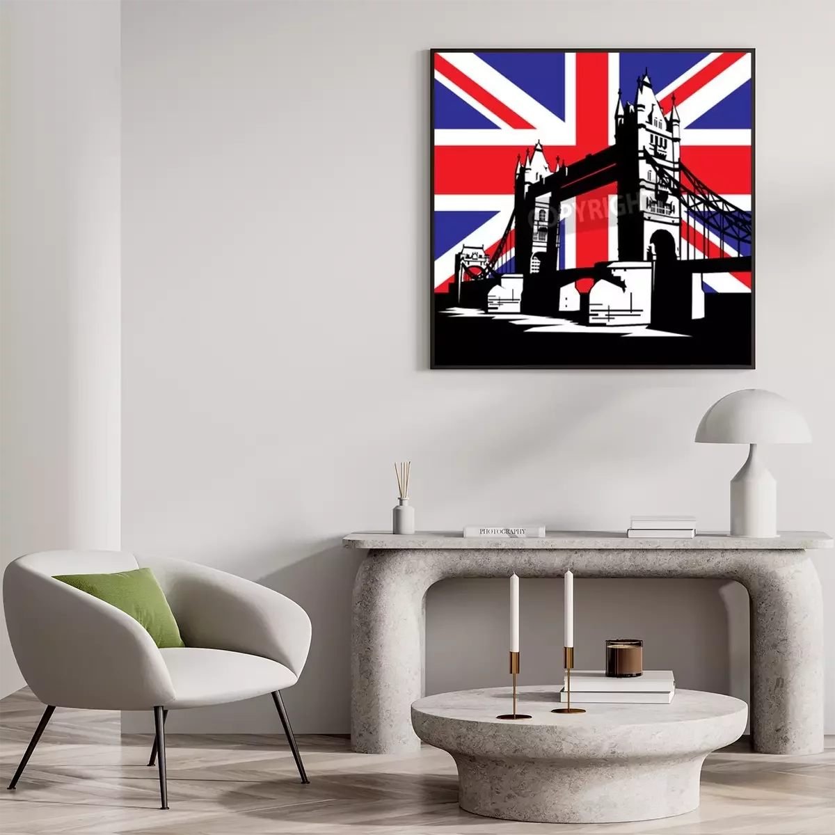 Poster : Pont de Londres dans le contexte du drapeau britannique