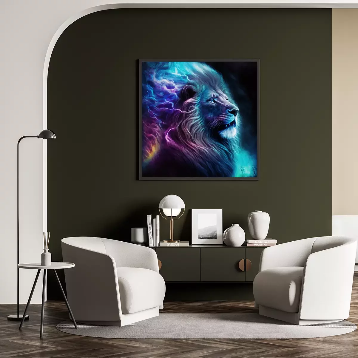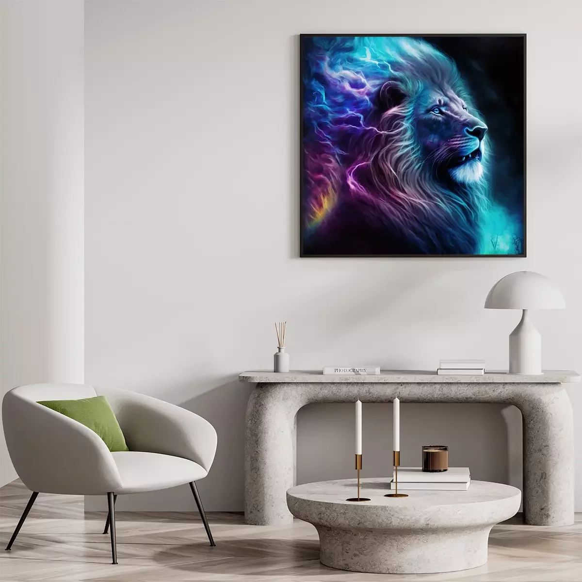 Poster : Portrait d'un lion aux éclairs