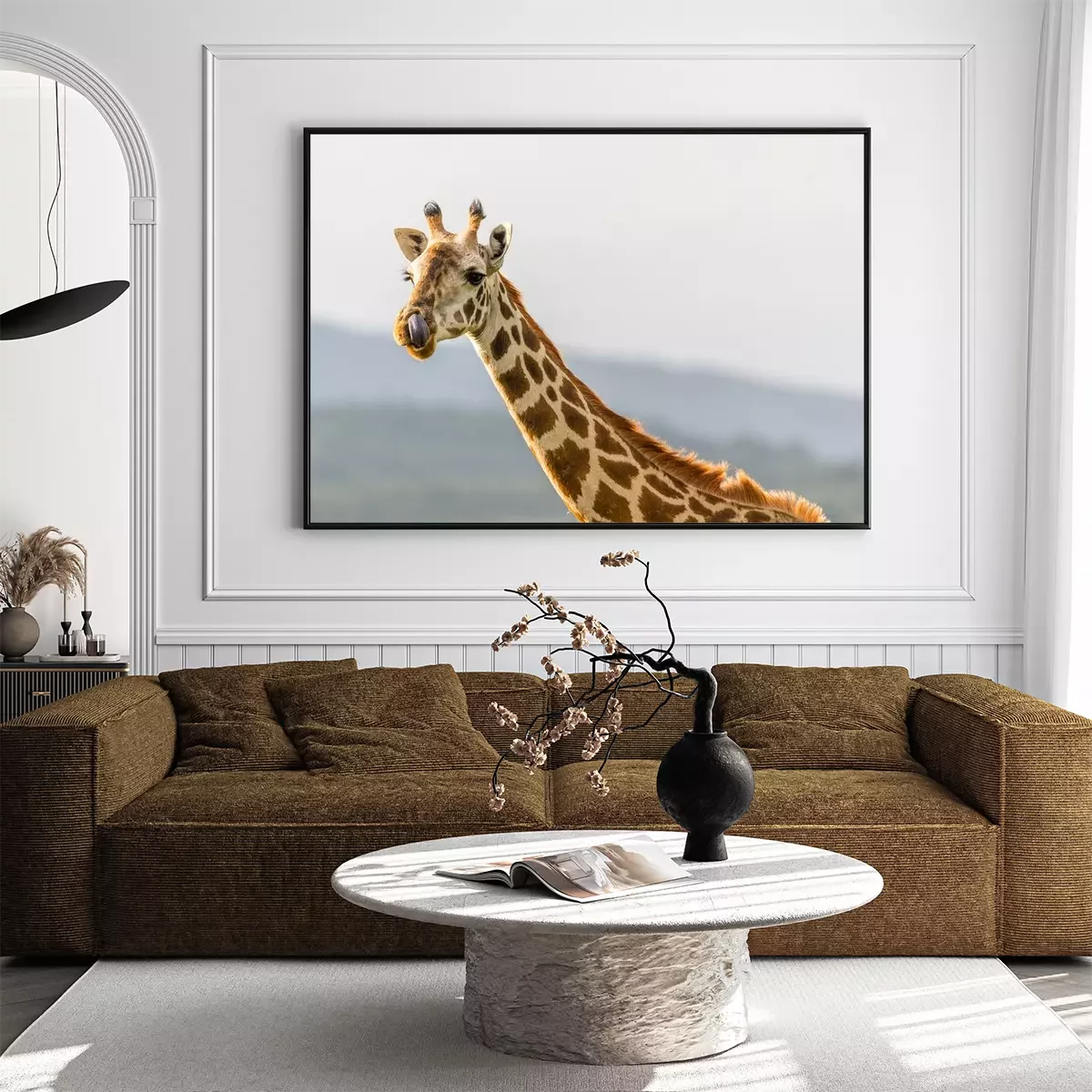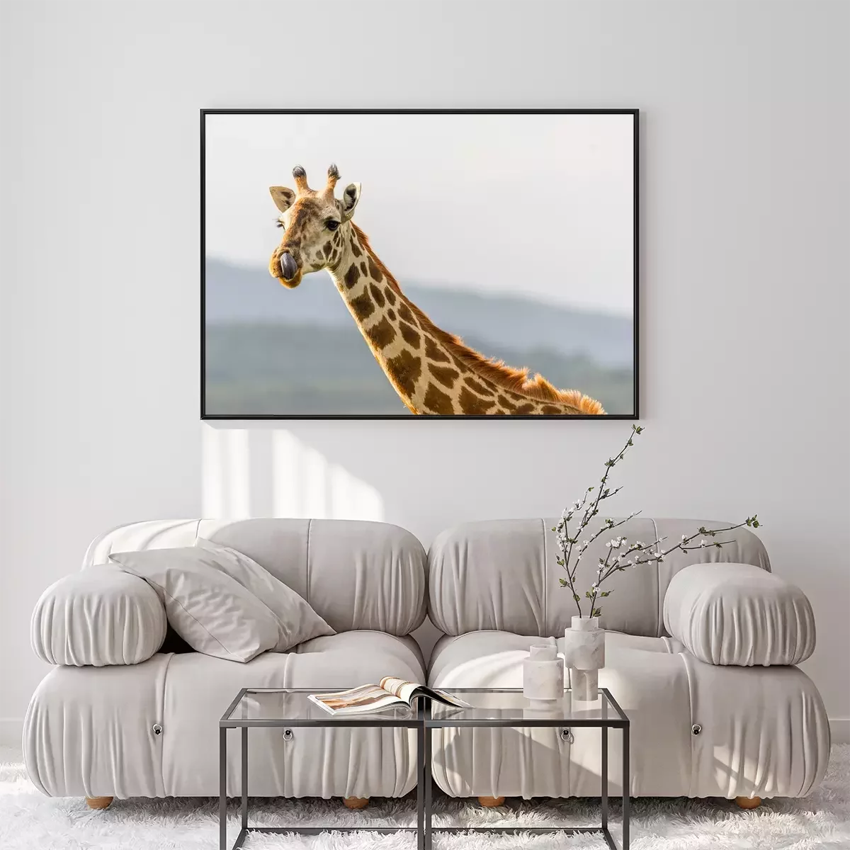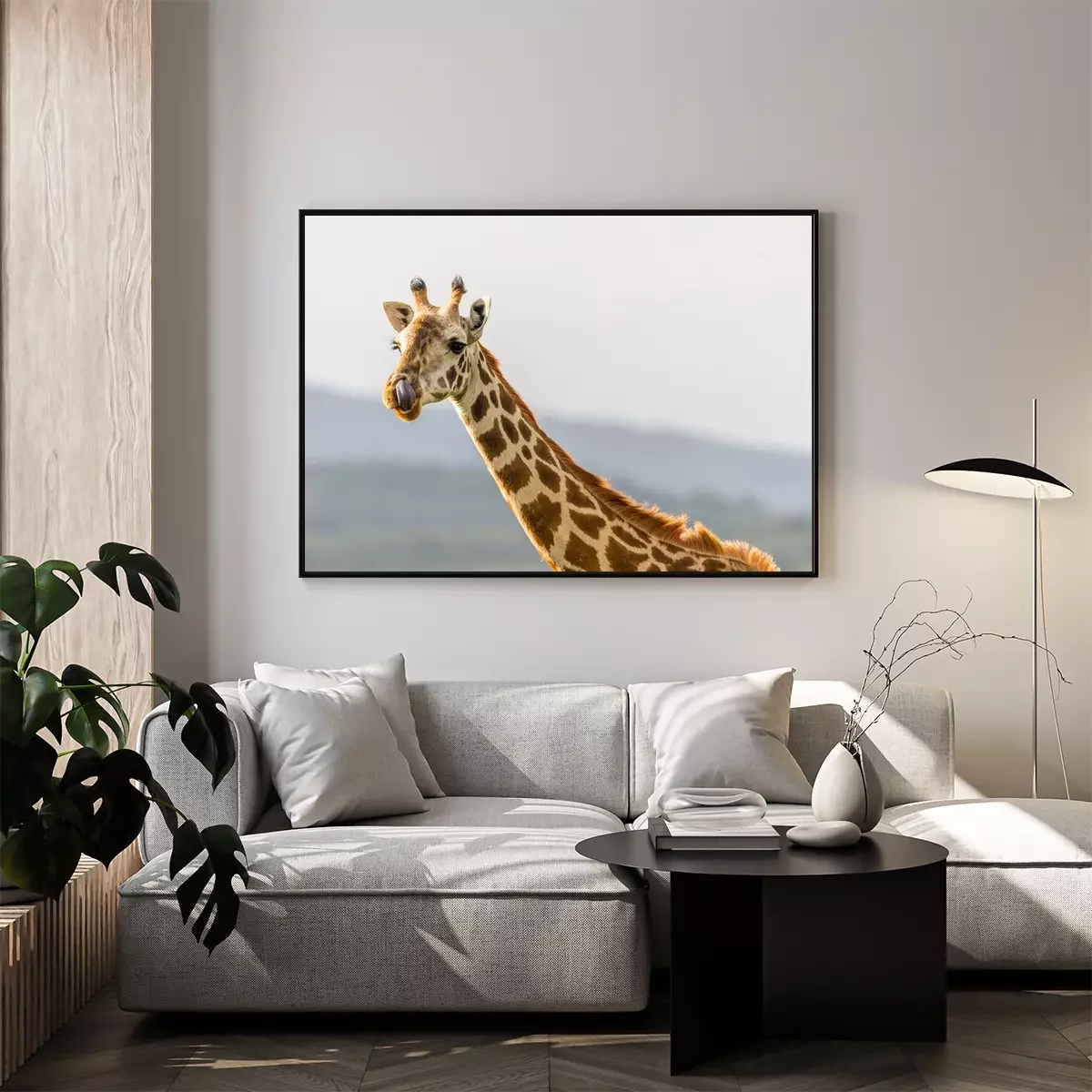 Poster : Portrait d'une girafe dans le fond de la neige.