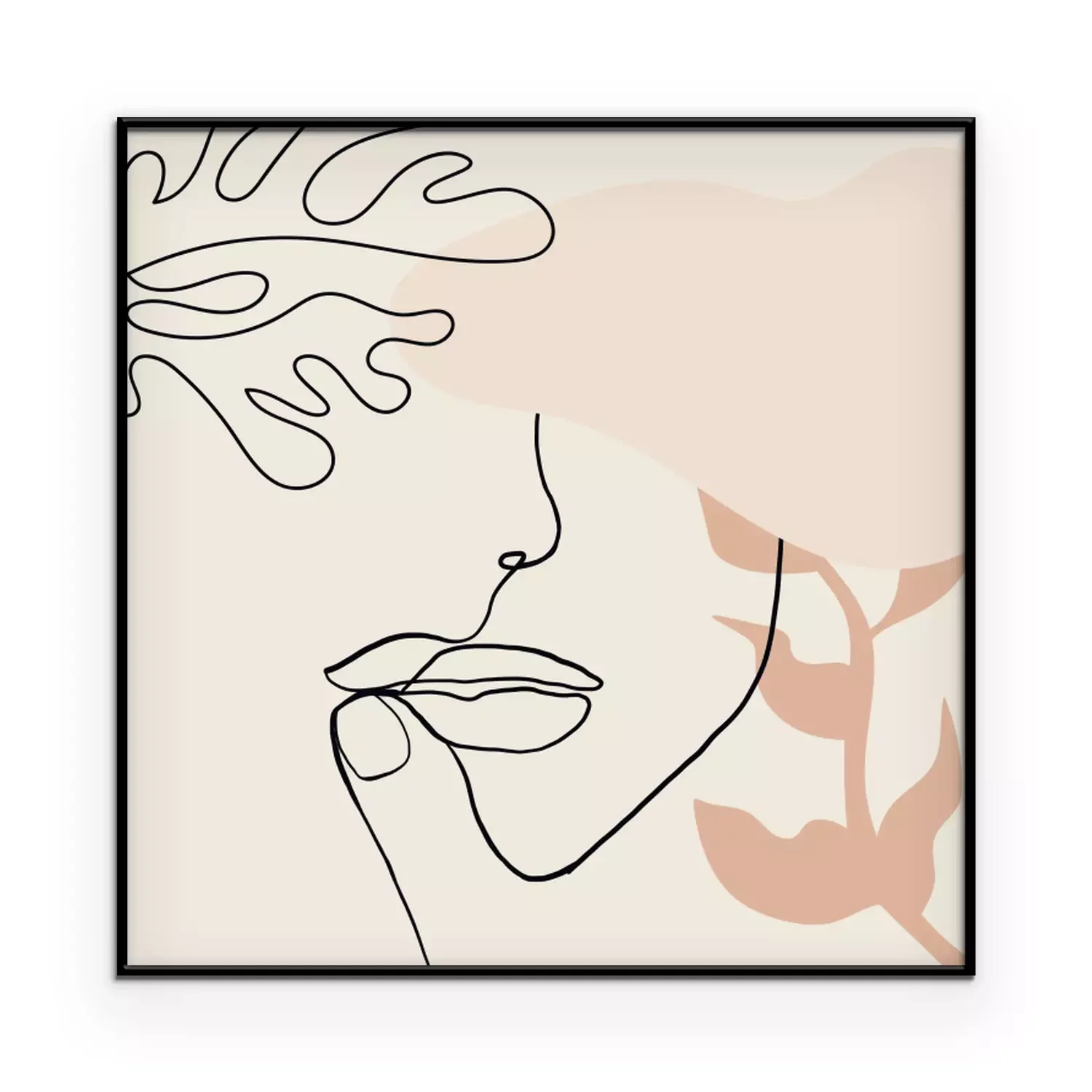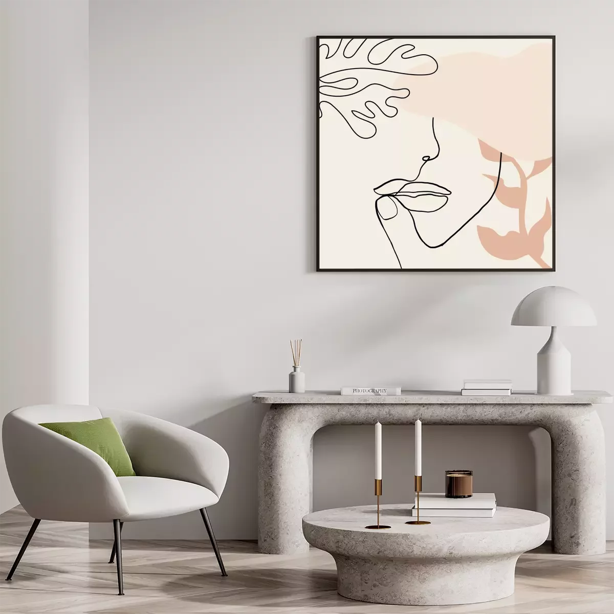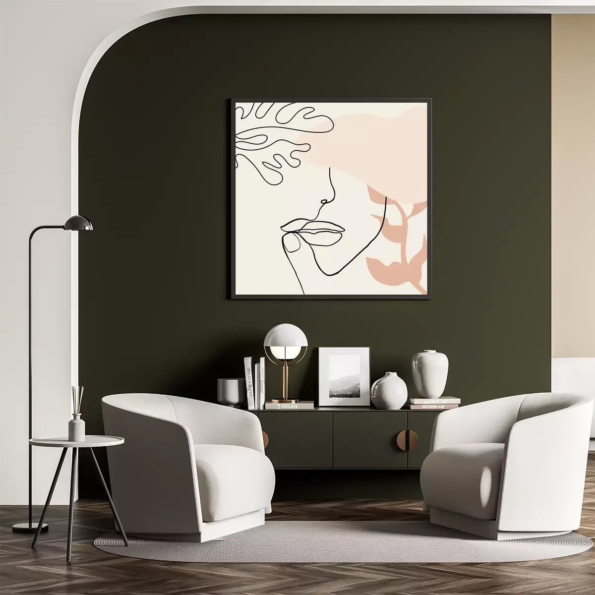 Un portrait minimaliste d'une femme avec des éléments abstraits