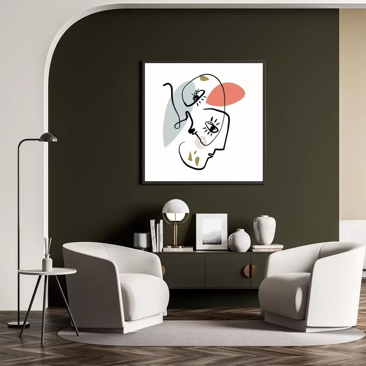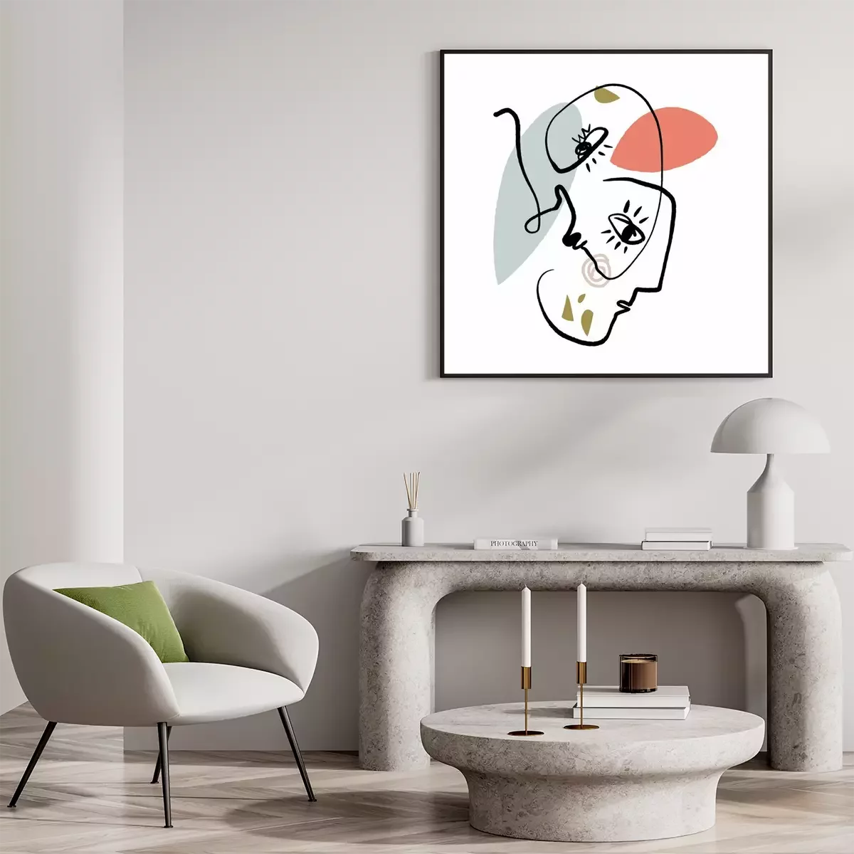 Abstract Fashion Artistic Portrait Painted Illustration Of People Faces Silhouette Group Pattern One Line Drawing Abstraction Modern Aesthetic Print Minimalism Interior Contour Handdrawn Lineart Conti
