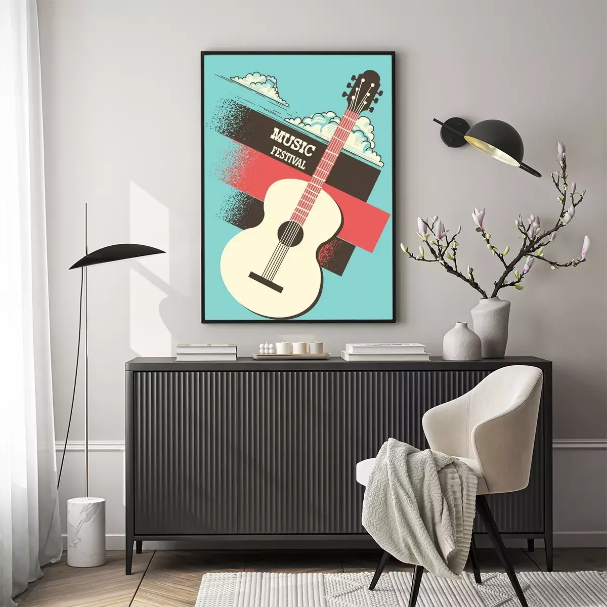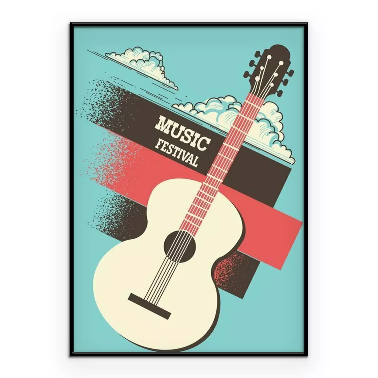 Poster  Poster musique avec guitare acoustique et décoration rétro