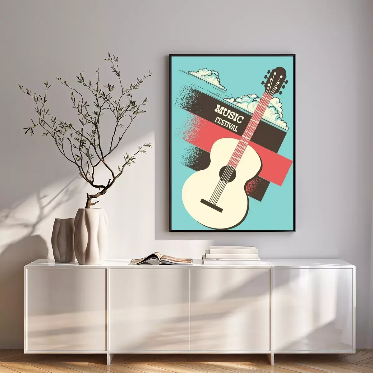 Poster : Poster musique avec guitare acoustique et décoration rétro