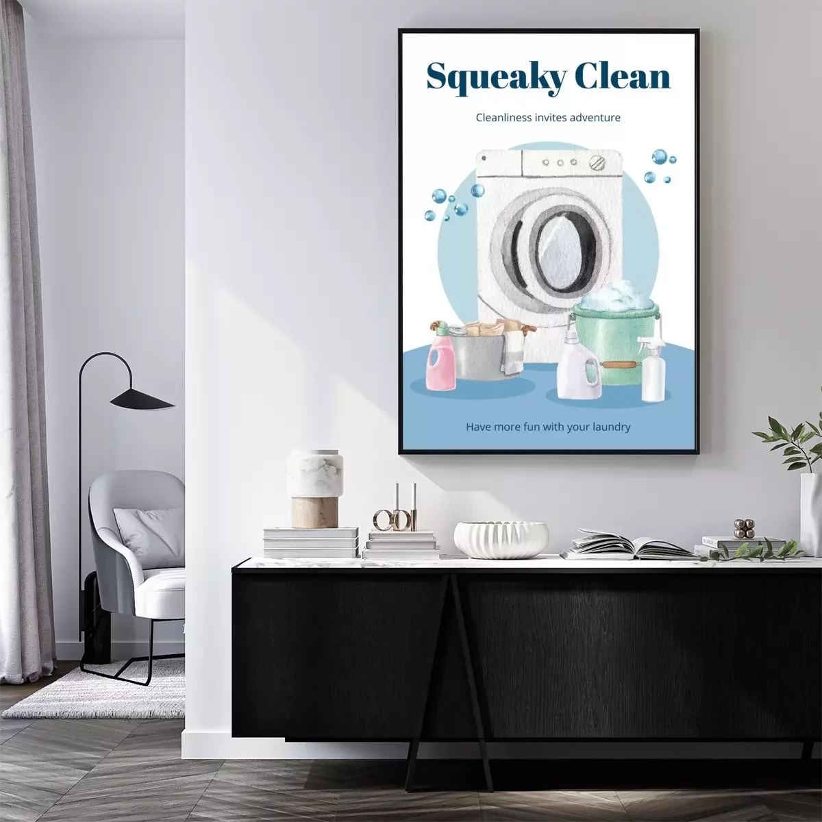 Poster : Poster template with laundry day concept,watercolor style