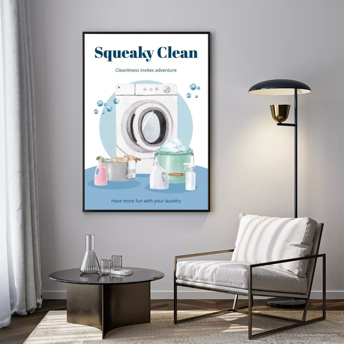 Poster  Poster template with laundry day concept,watercolor style