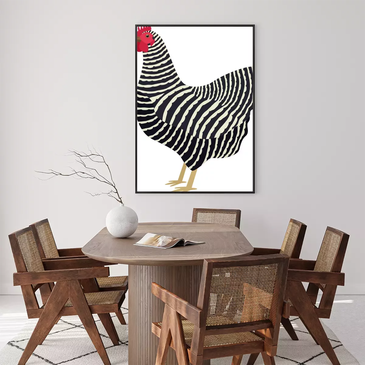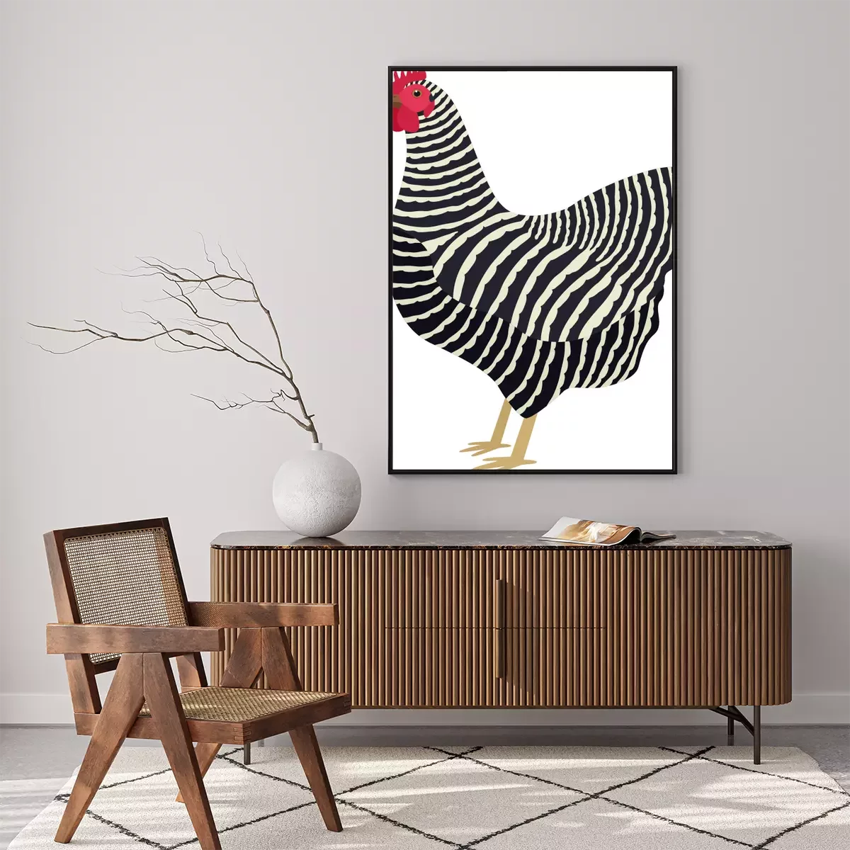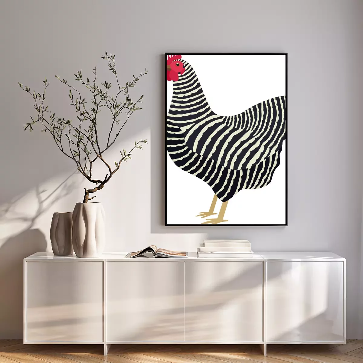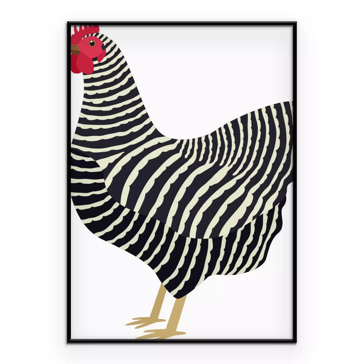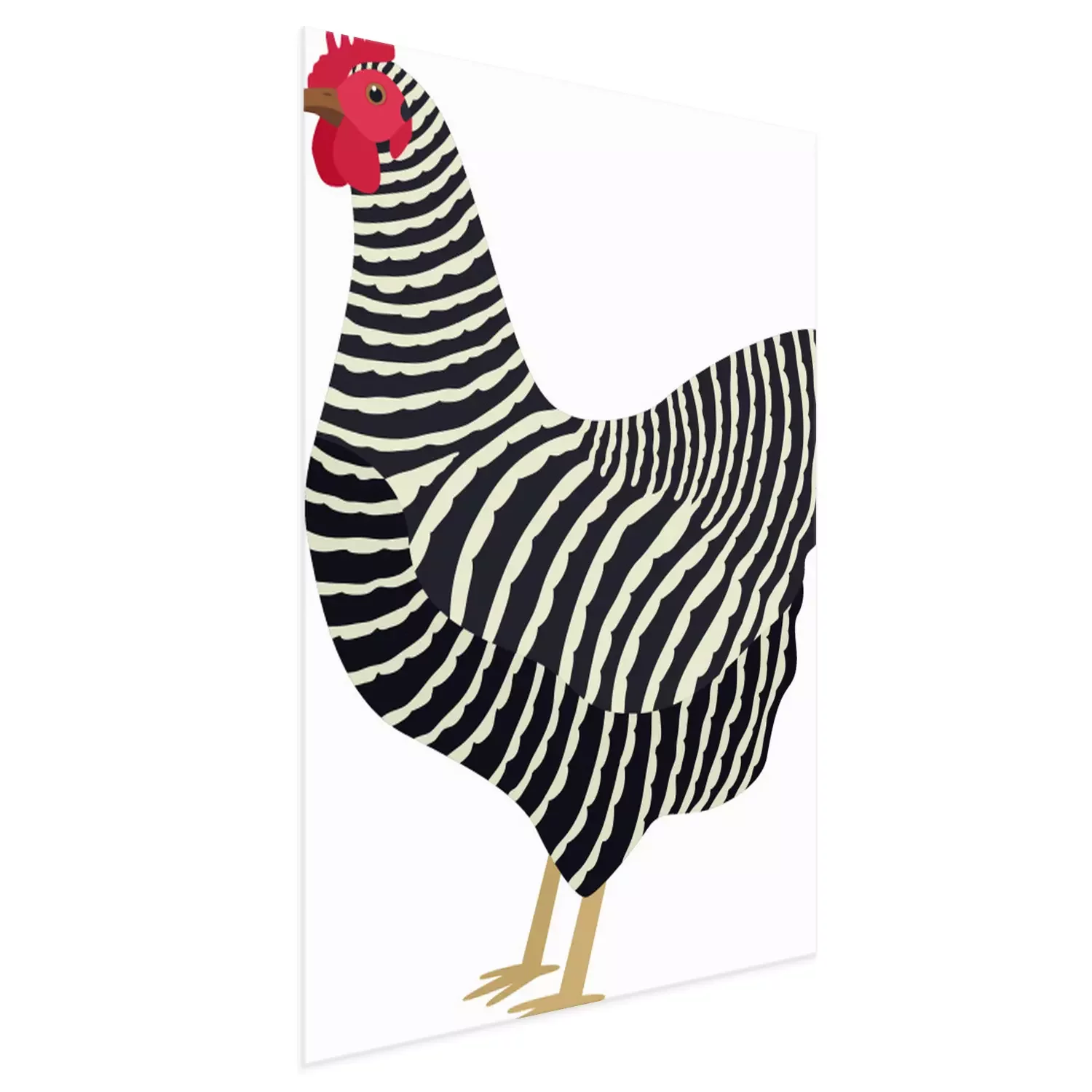 Poster : Poule noire et blanche avec un peigne rouge