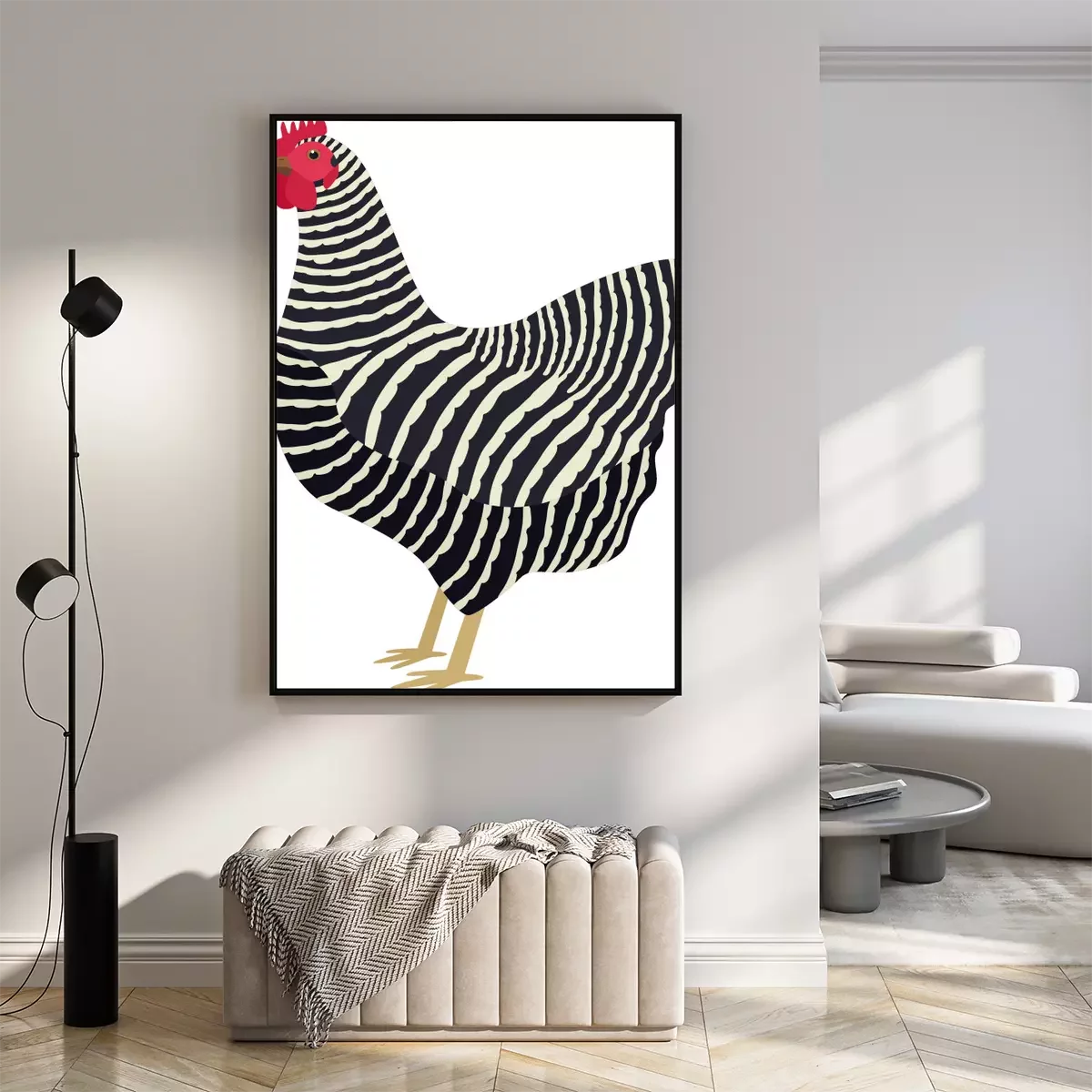 Poster  Poule noire et blanche avec un peigne rouge