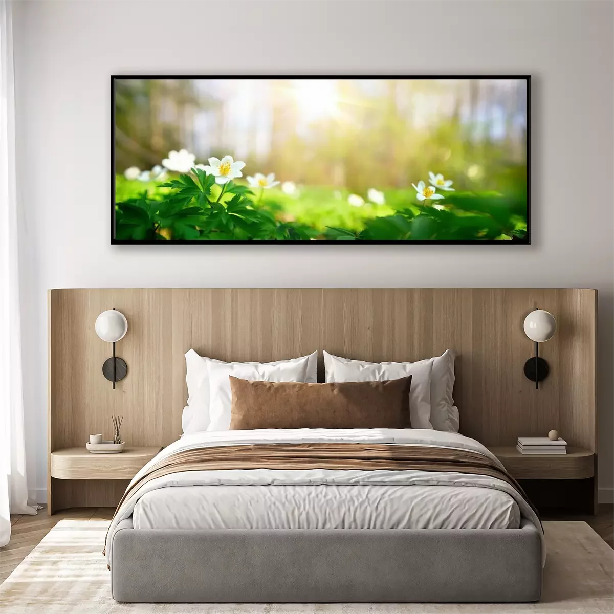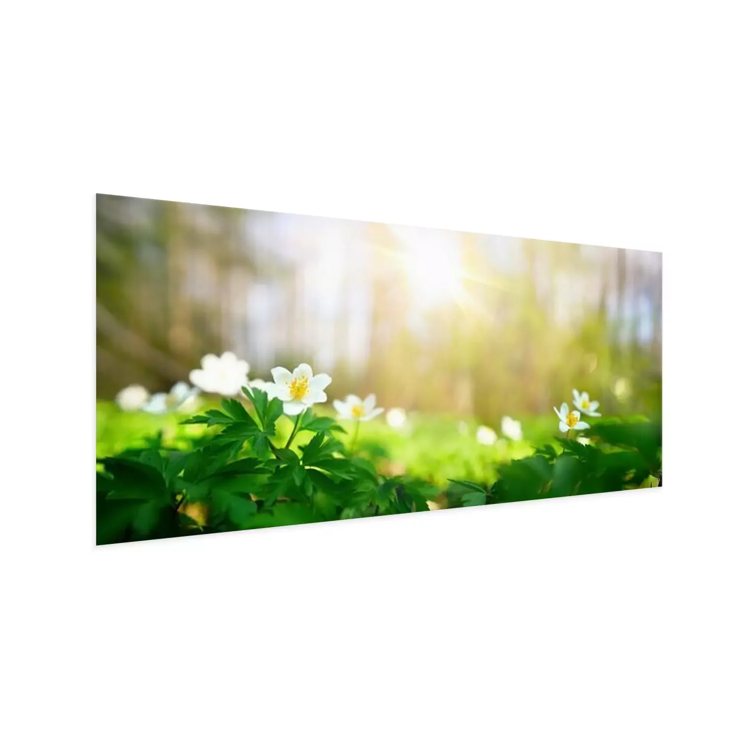 Beautiful white flowers of anemones in spring in a forest close-up in sunlight in nature. Spring forest landscape with flowering primroses.