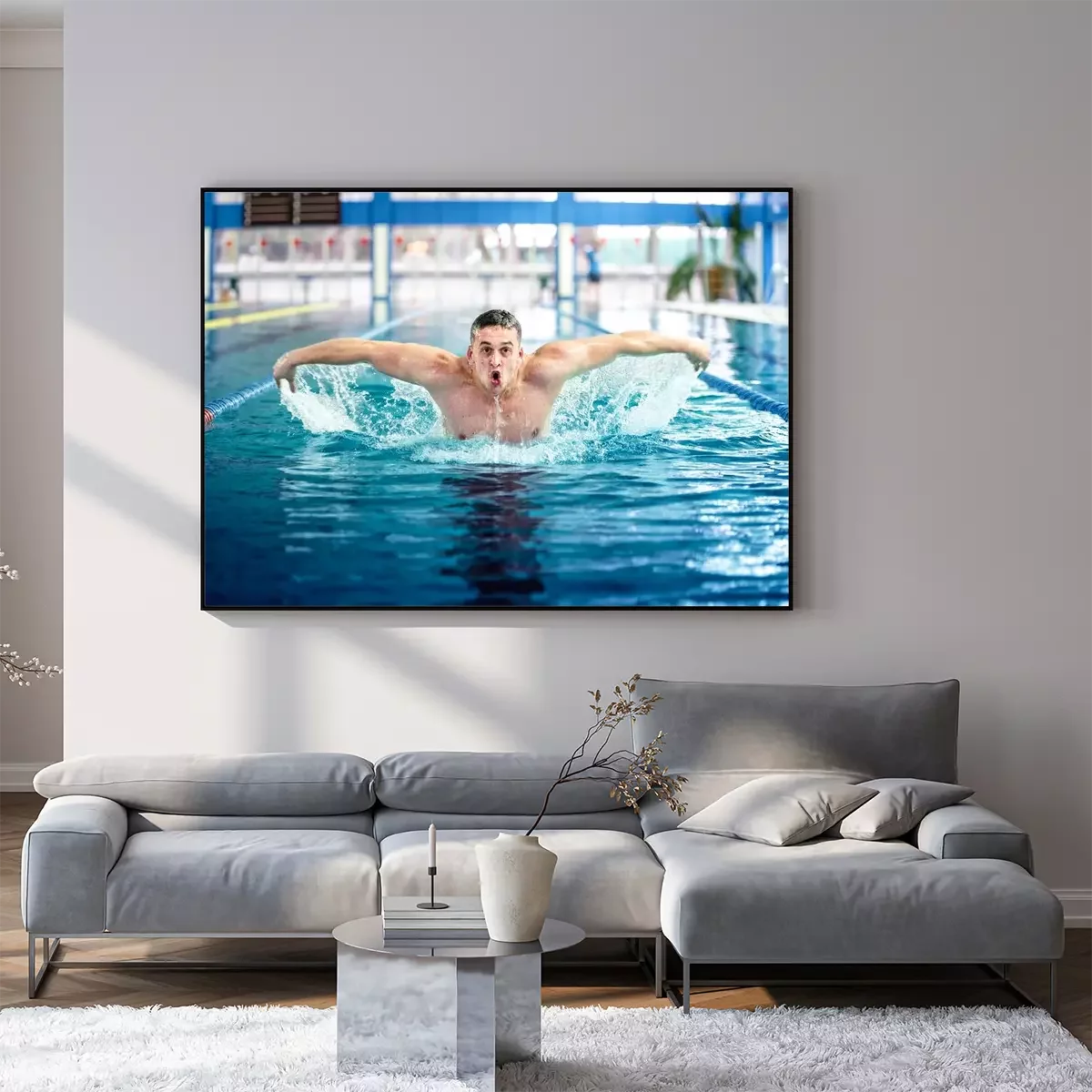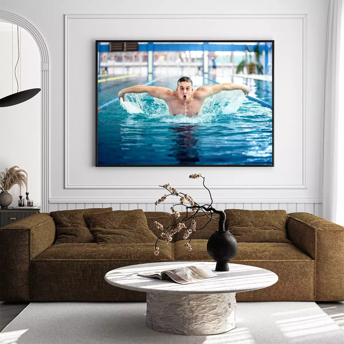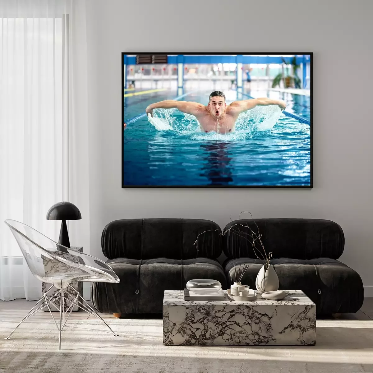 Poster : Professionnel, mâle, nageur, exécuter, papillon ...
