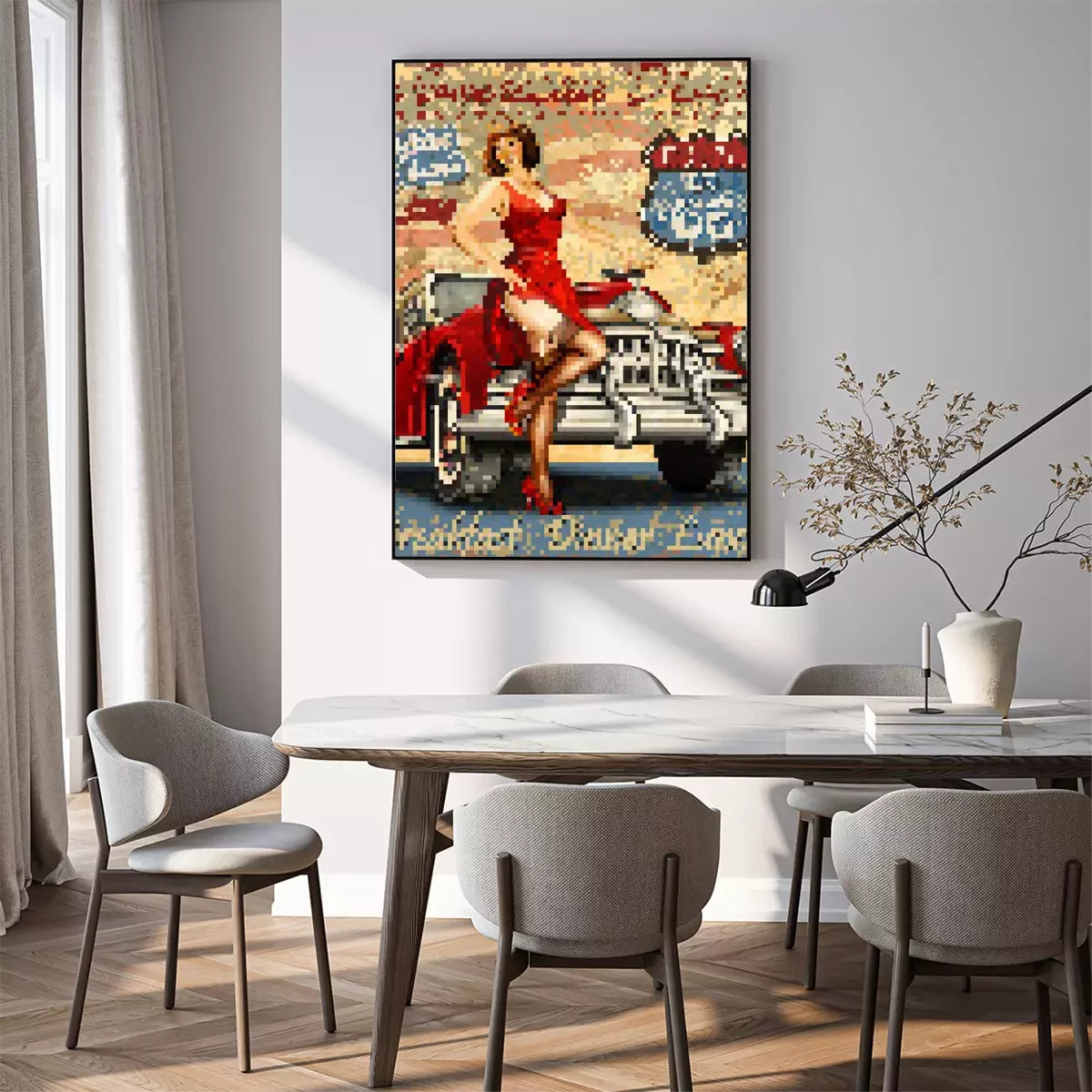 Ces posters sont imprimés sur du papier de haute qualité. L'utilisation de la technologie HP Latex permet d'obtenir des couleurs éclatantes pendant de nombreuses années et qui résistent aux effets nuisibles des rayons UV. Le poster standard est imprimé sur du papier semi-brillant.