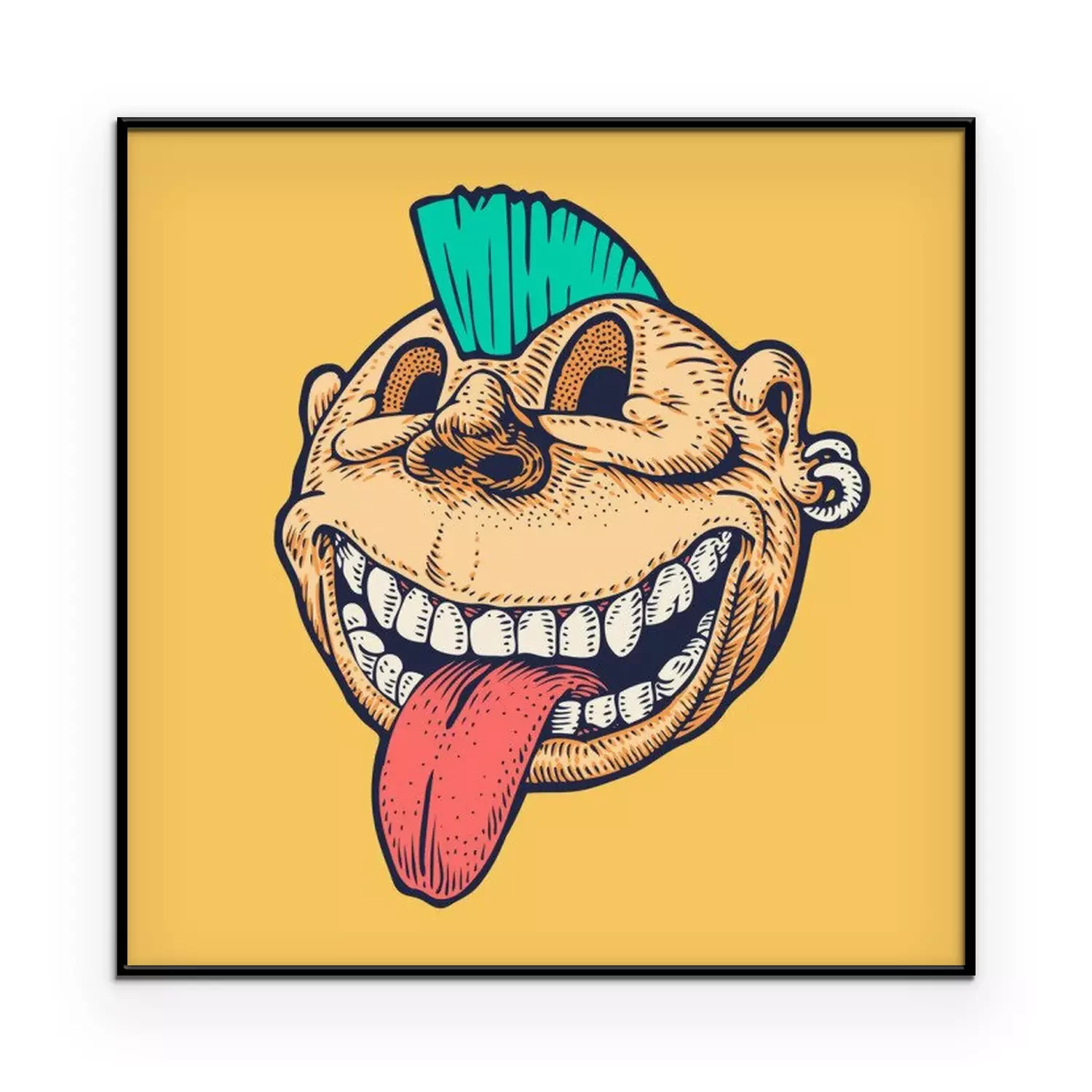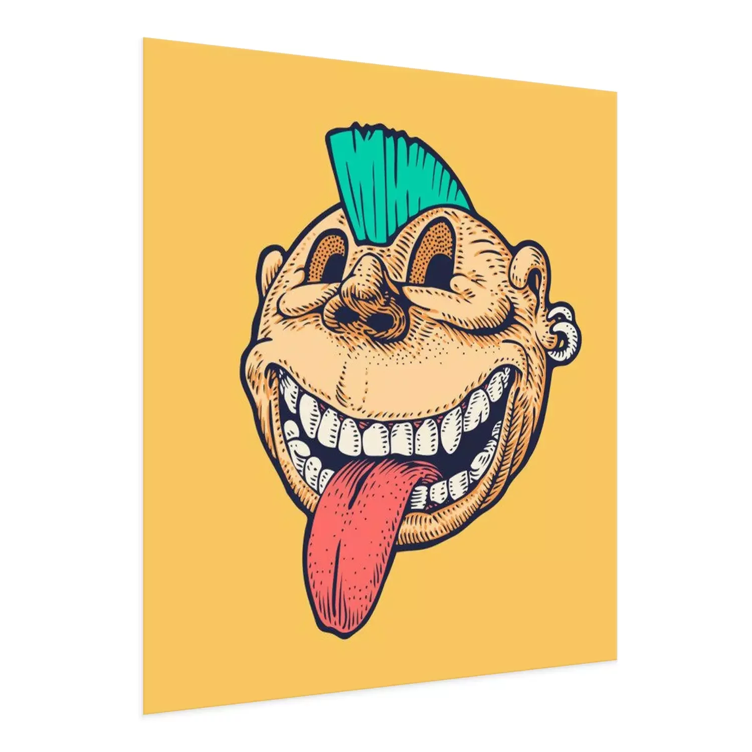 Poster  Punk Emoticon with a crest on the head and tongue hanging out. Drawing Style. Vector illustration.