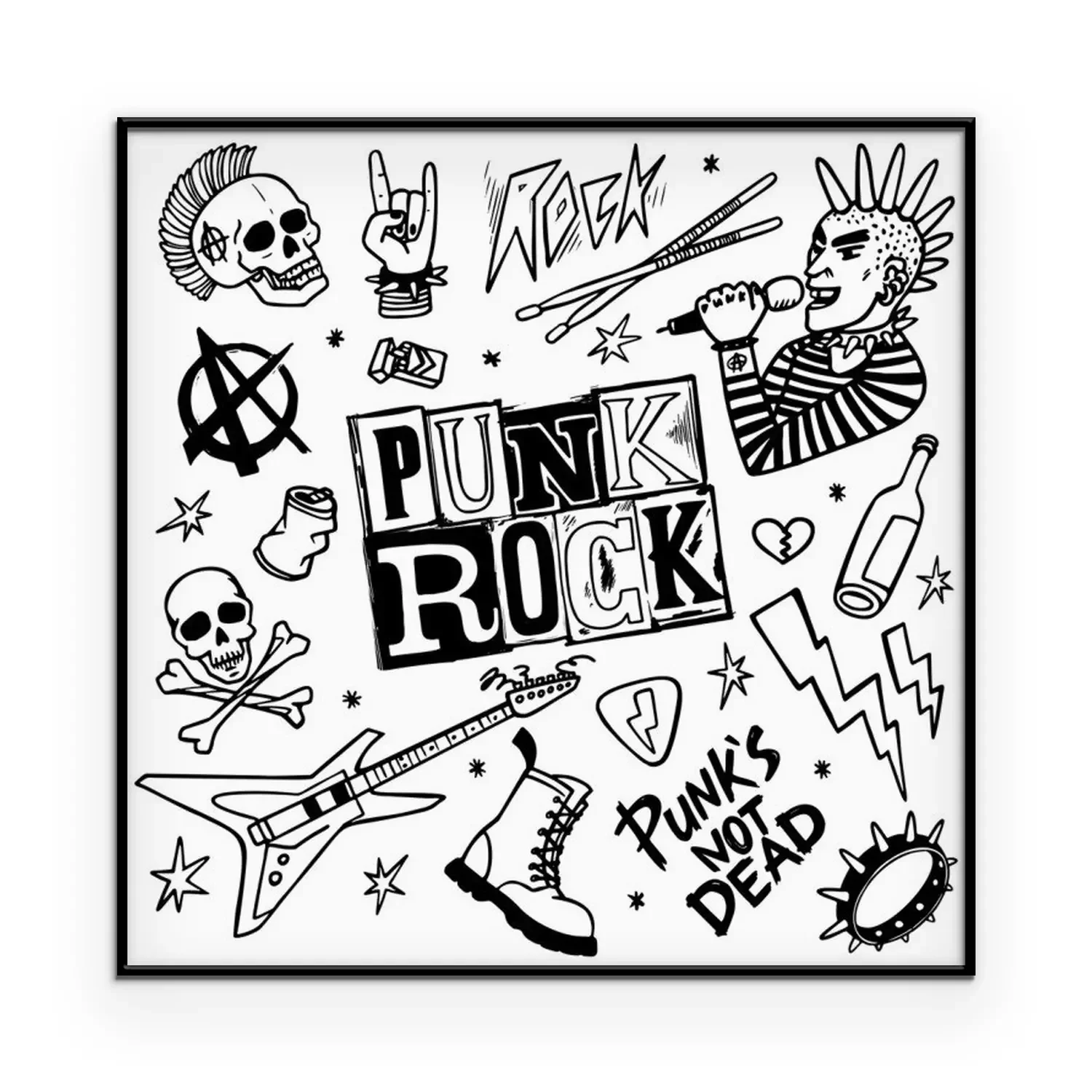 Poster  Punk rock set. Punks not dead words and design elements. vector illustration.