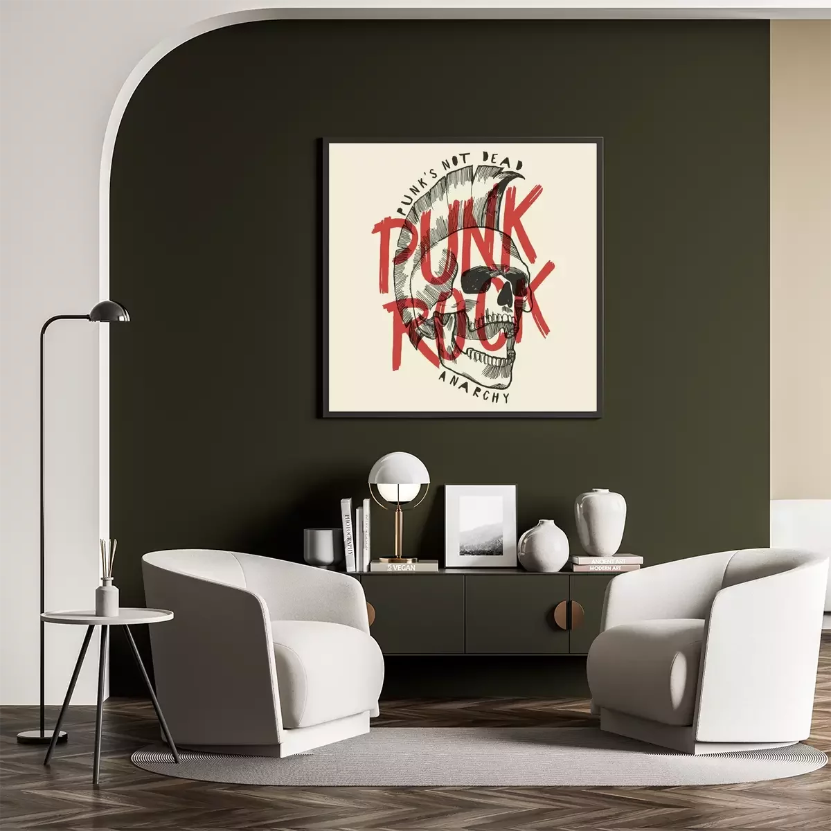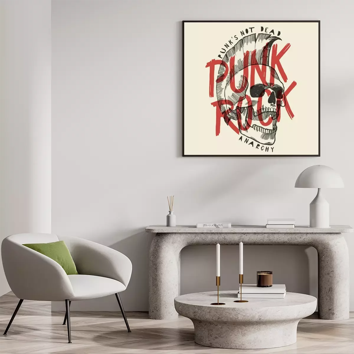 Poster  Punk rock skull print. Punk n'est pas une affiche anarchique mortelle