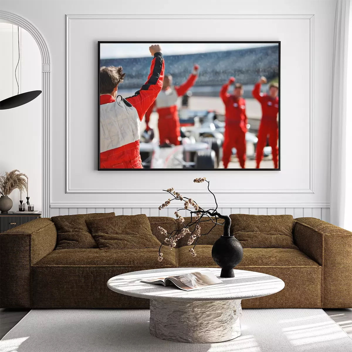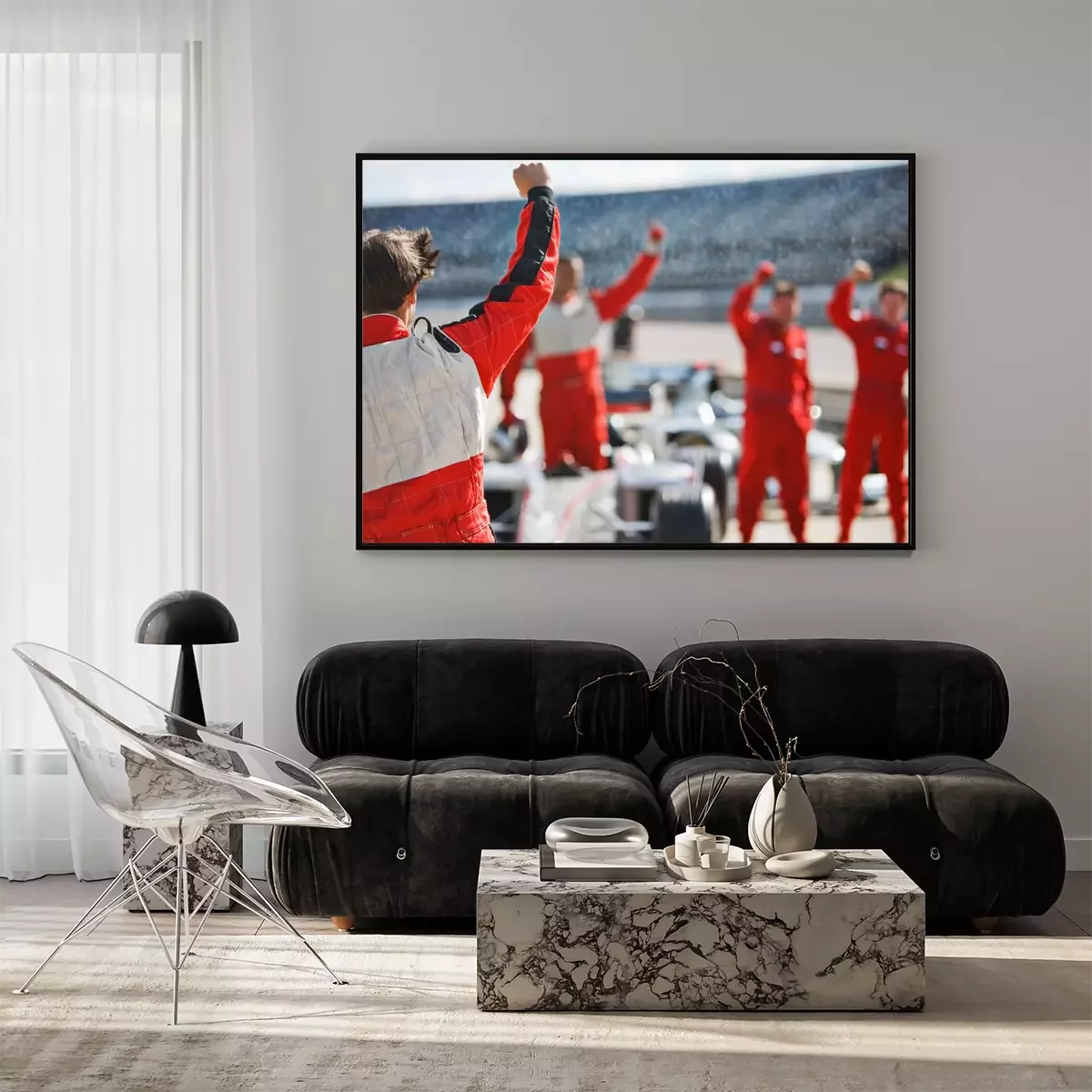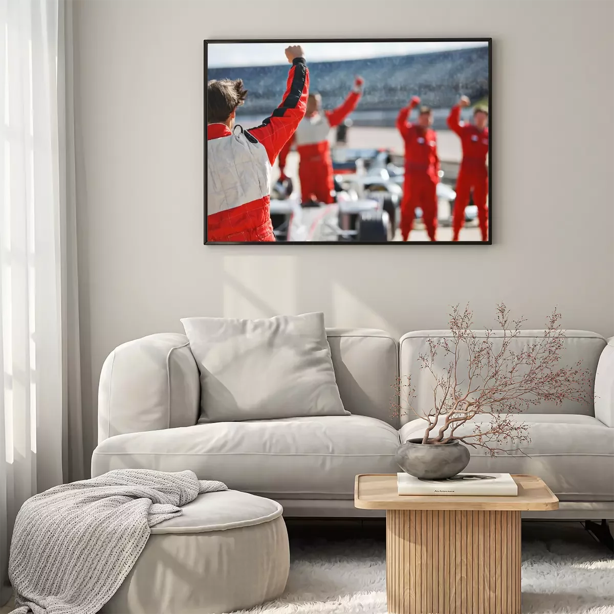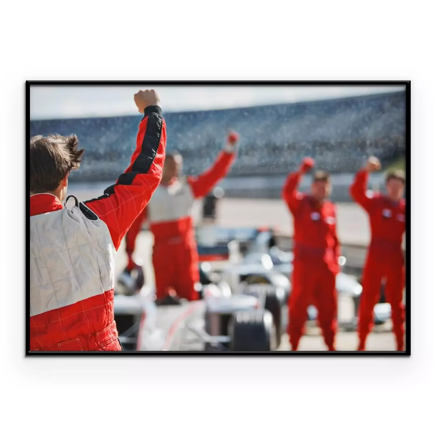 Poster : Racer and team cheering on track