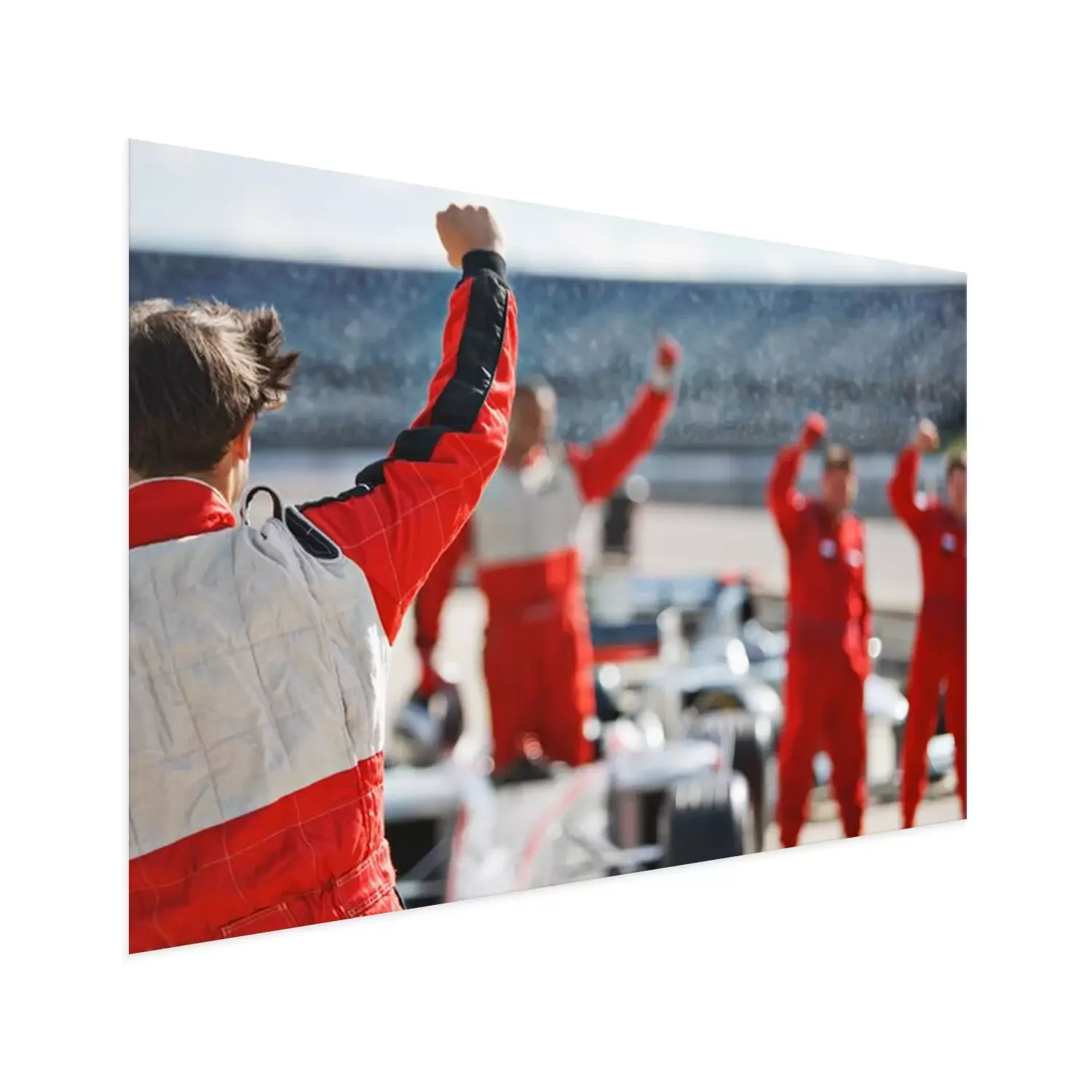 Poster  Racer and team cheering on track