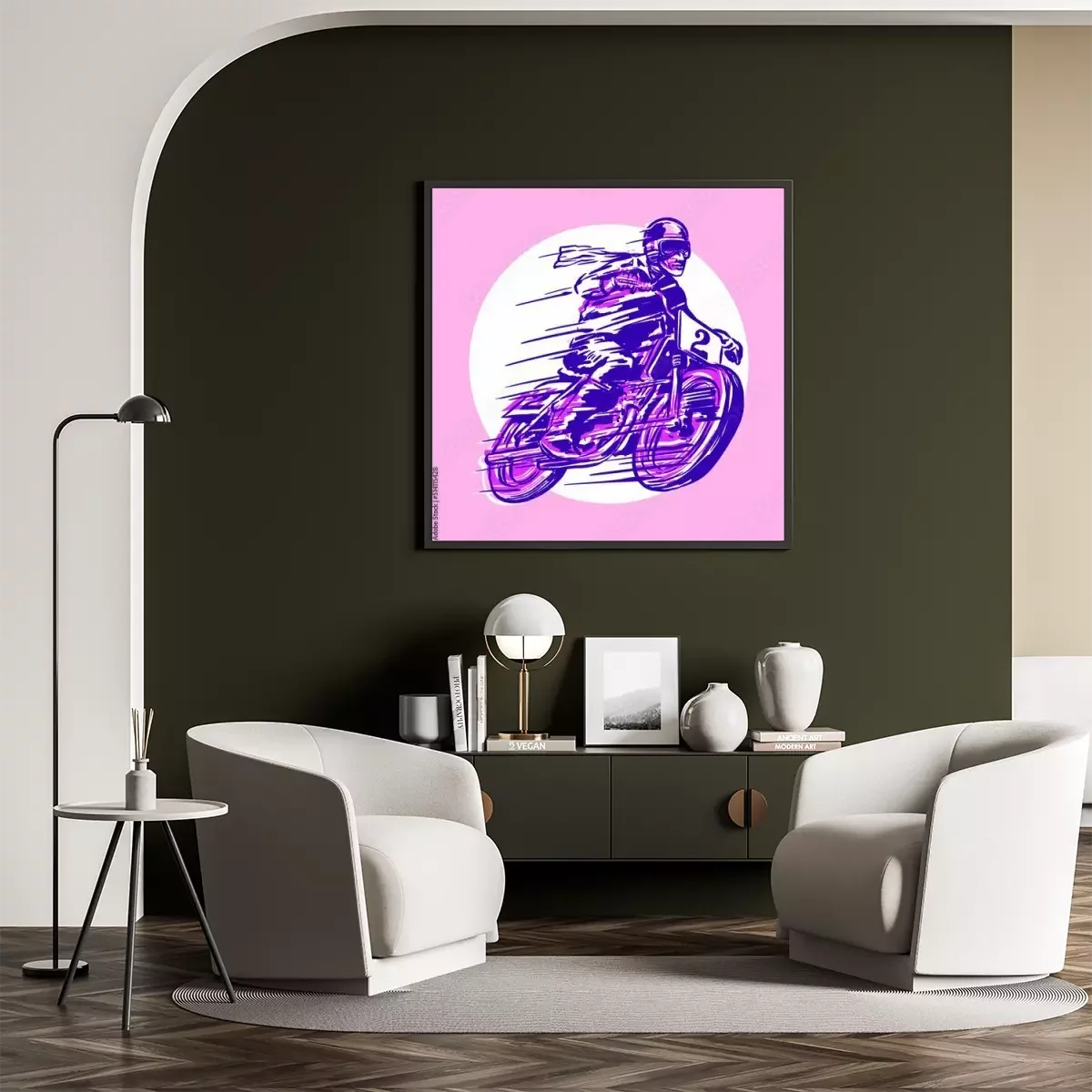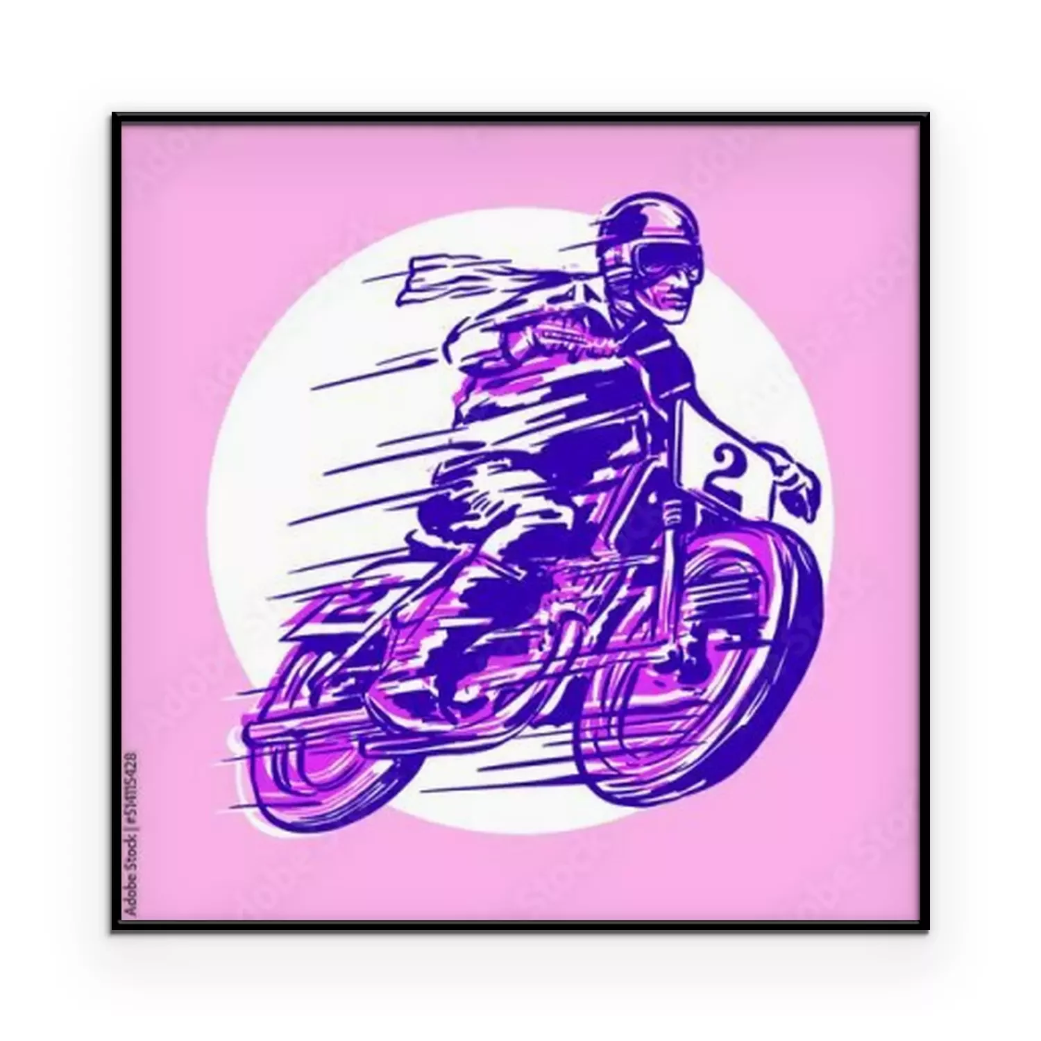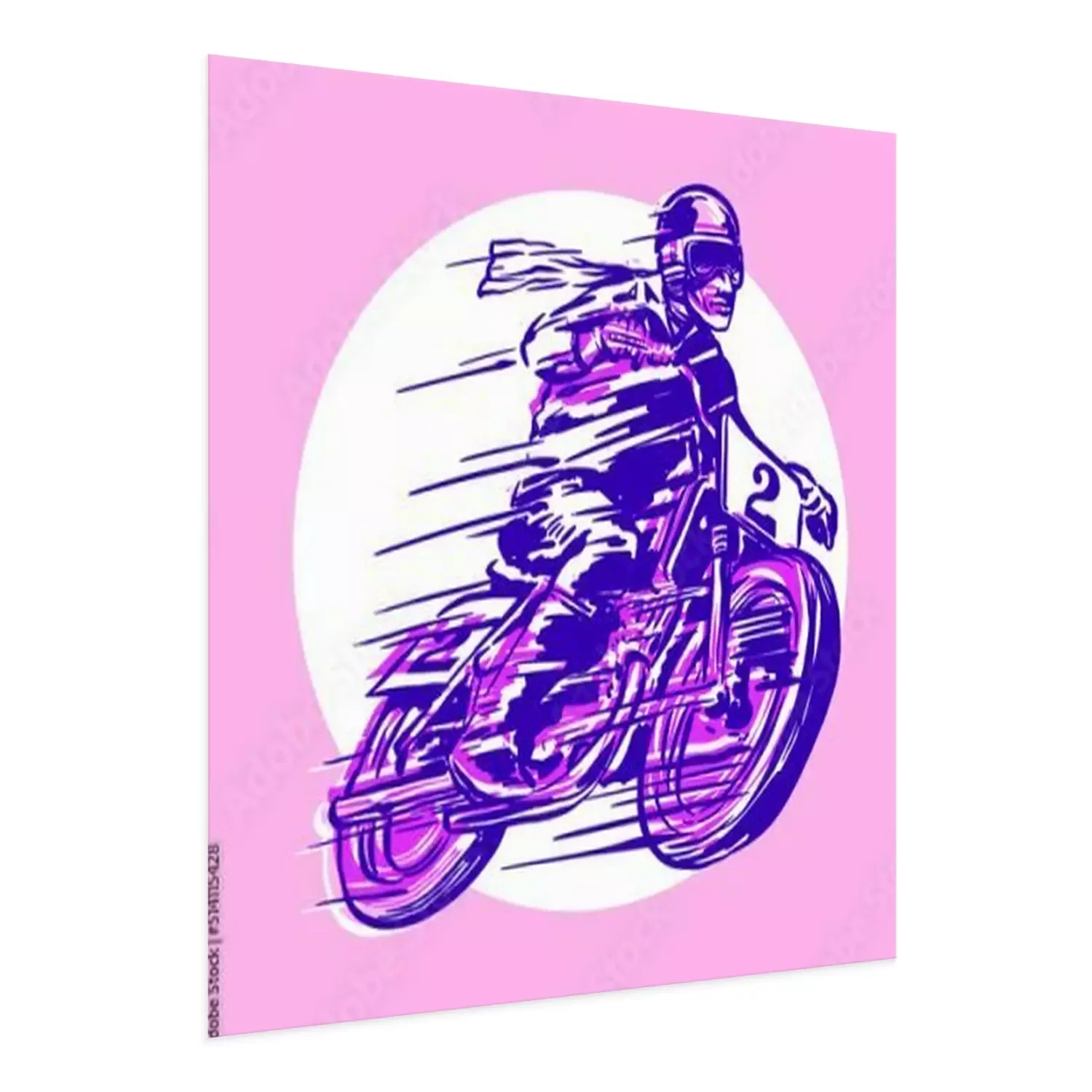Poster : Racer with motorcycle objects in retro hand drawing style