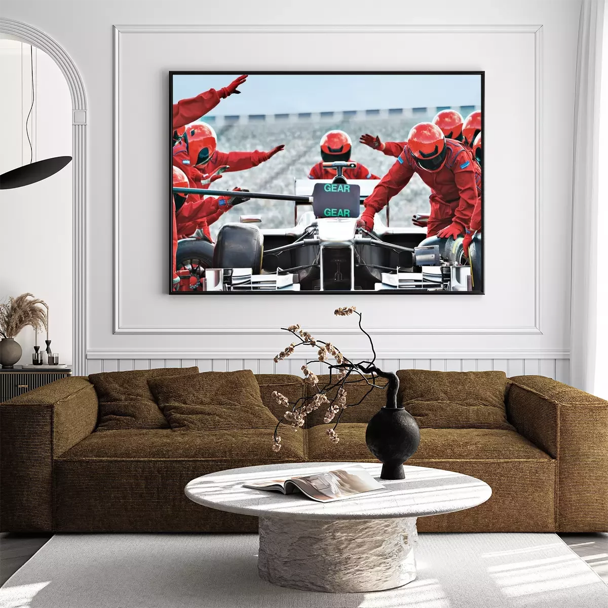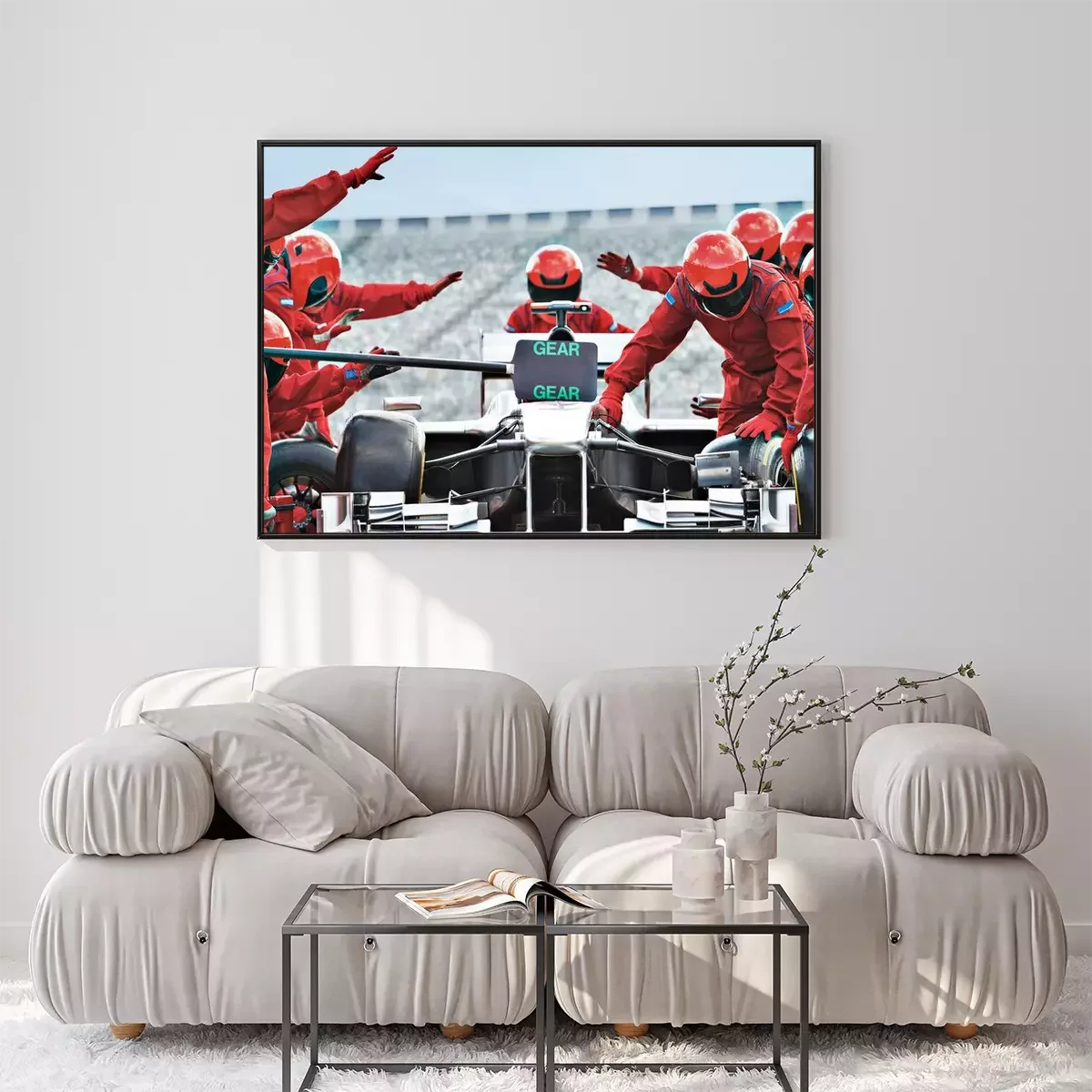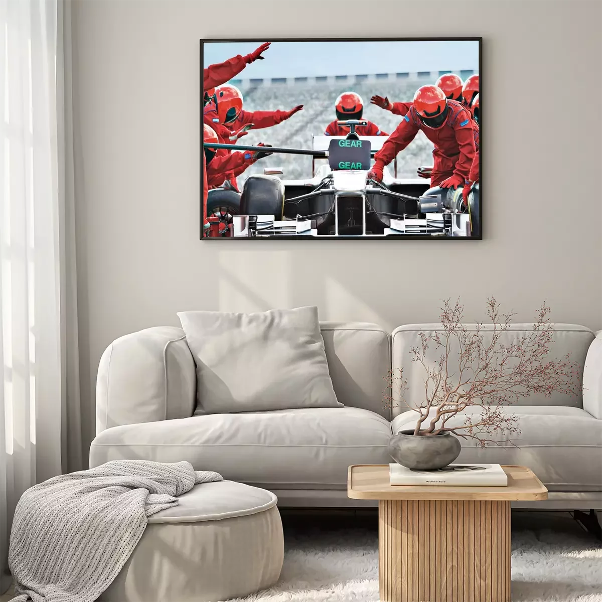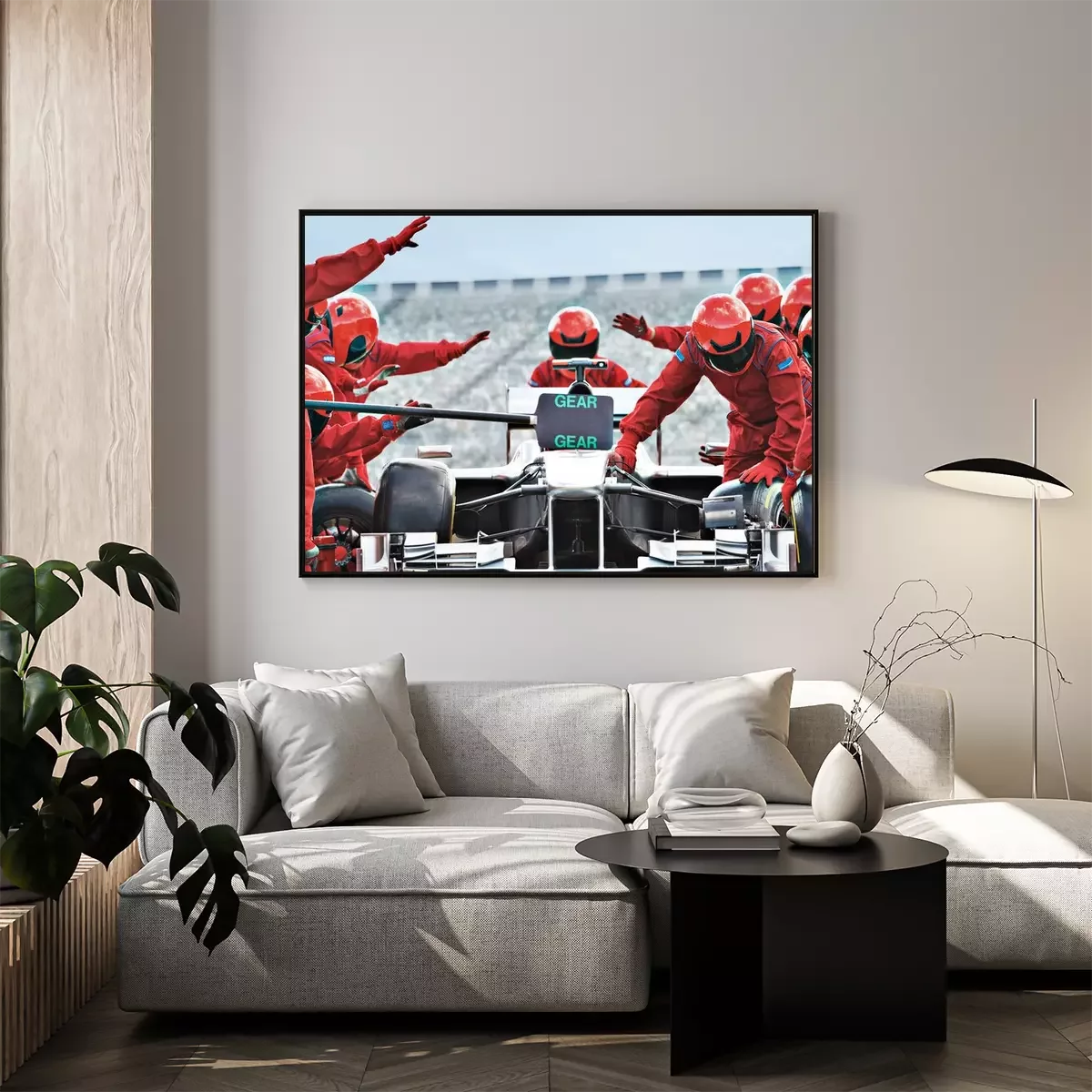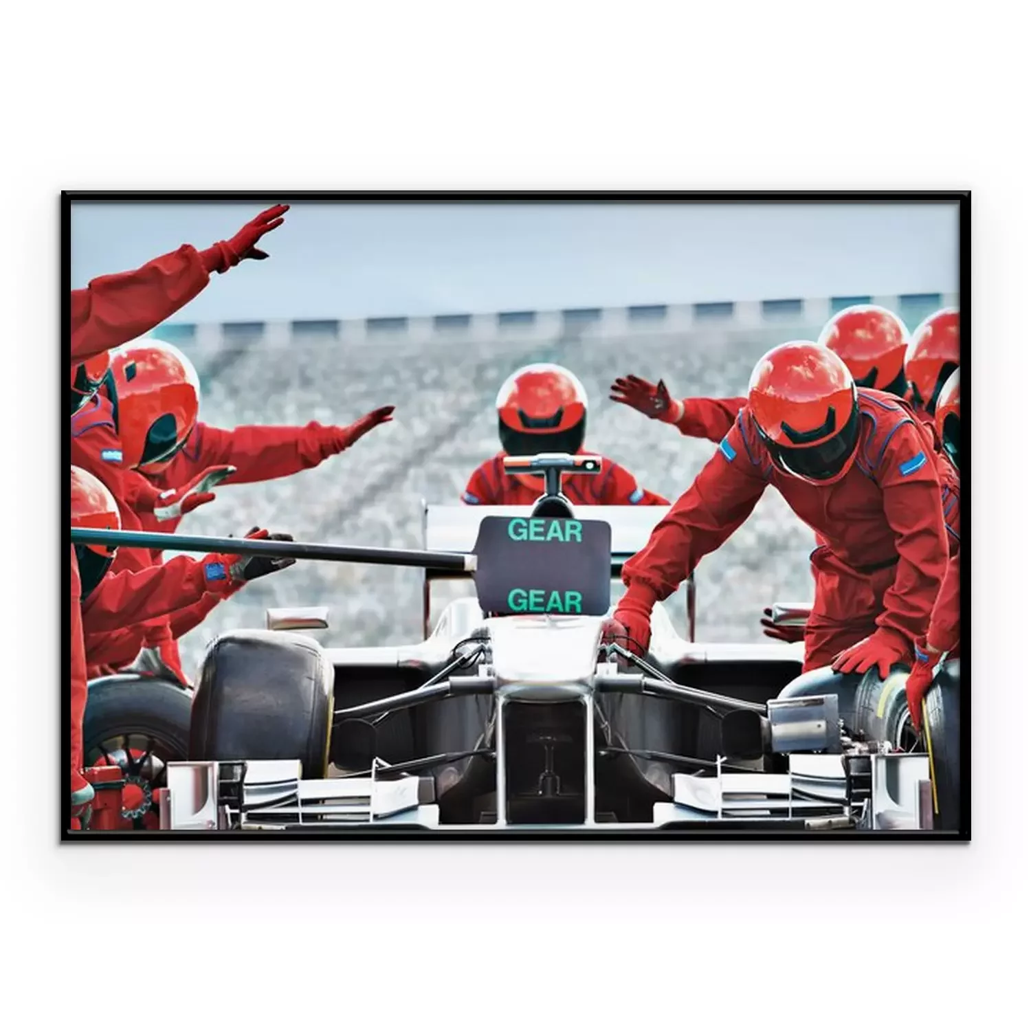 Poster  Racing team working at pit stop