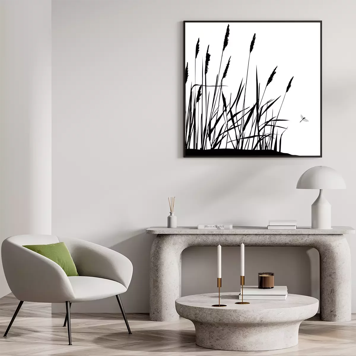 Poster : Reed et voler libellule - noir et blanc vecteur Illustration