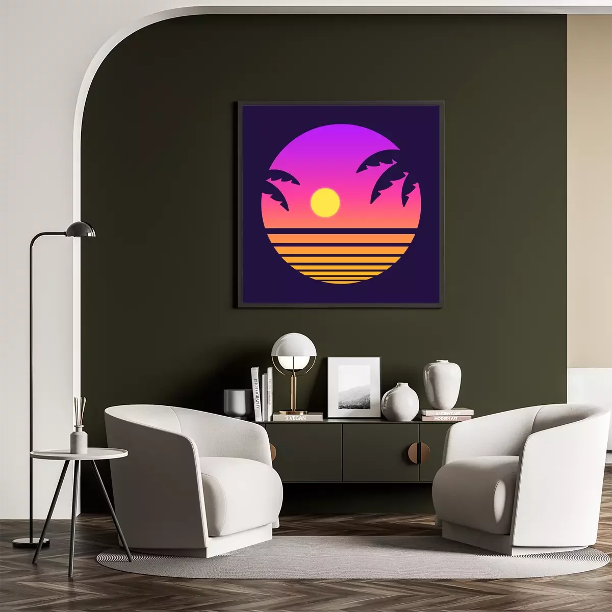 Poster : Représentation rétro avec coucher de soleil