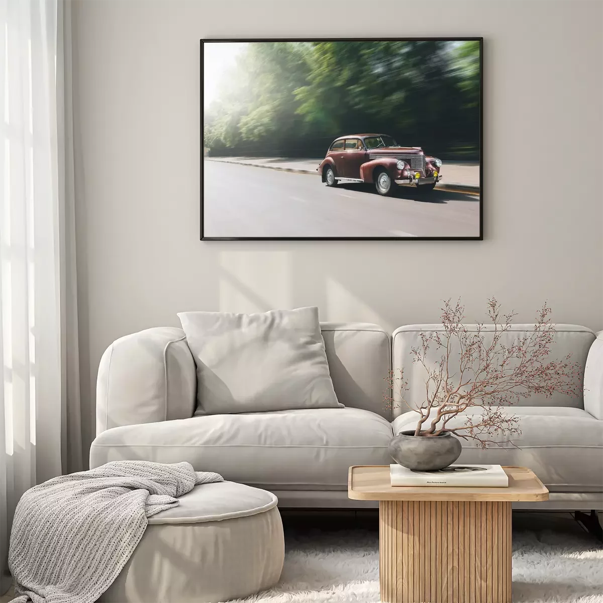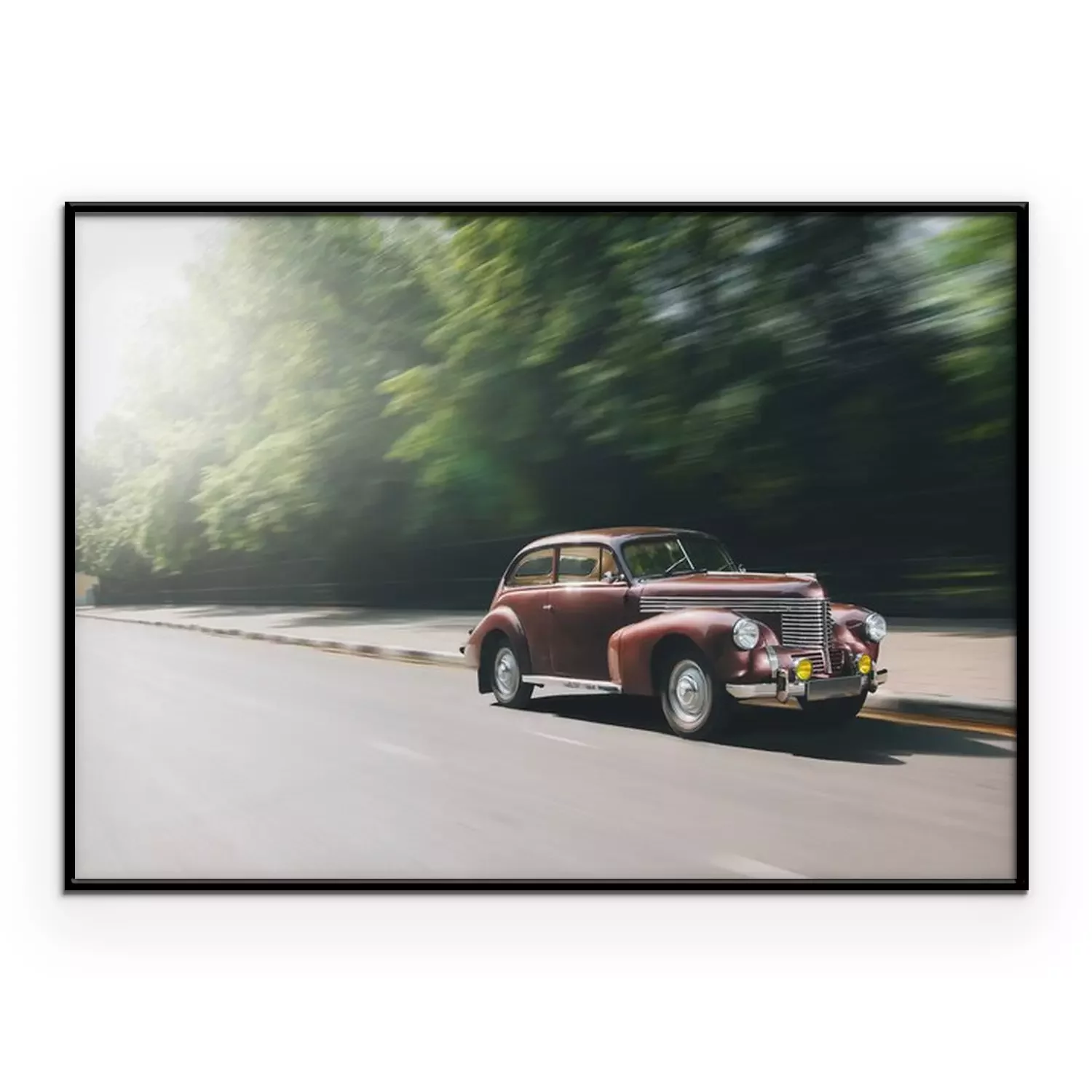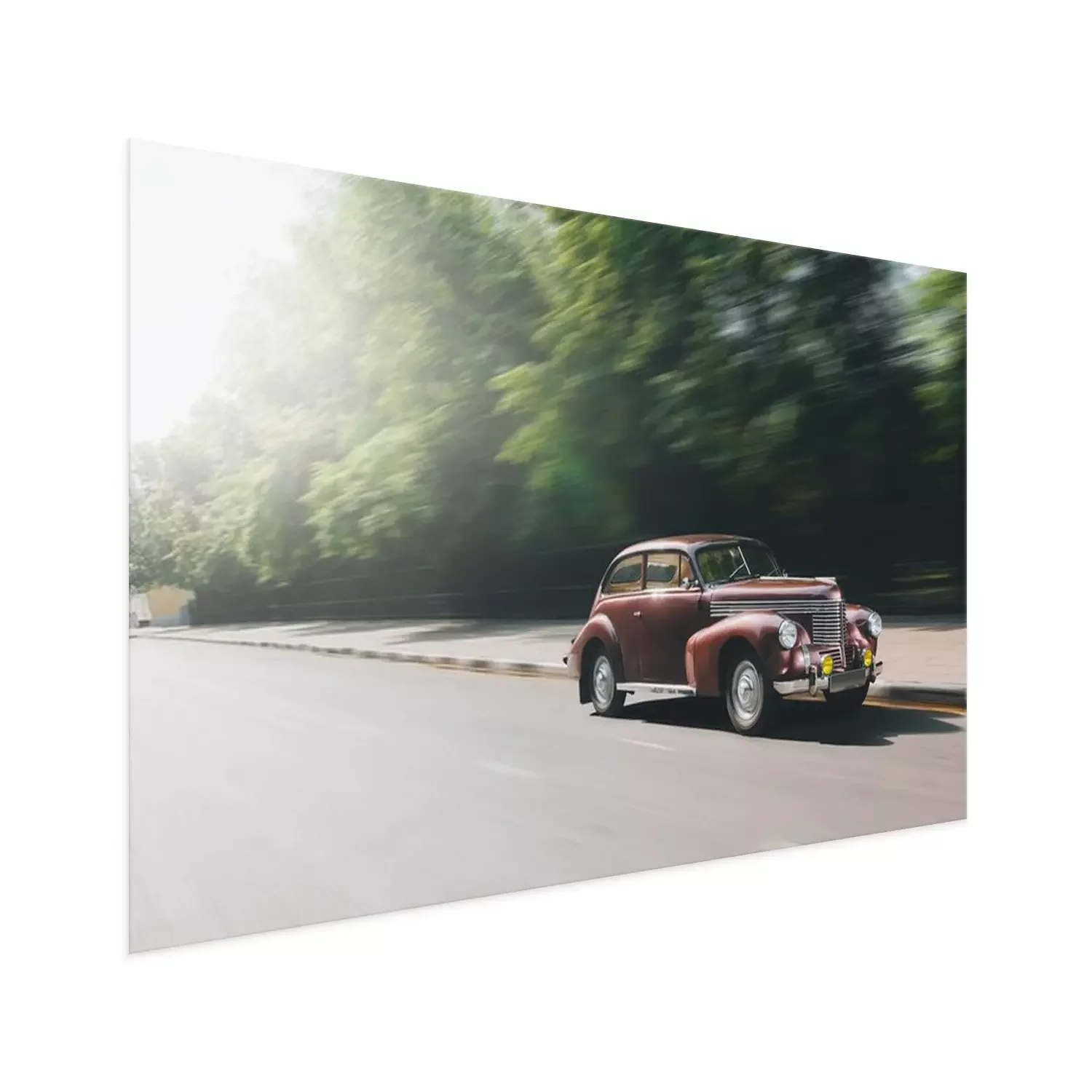 Poster  Rétro tour de vitesse de la voiture sur la route