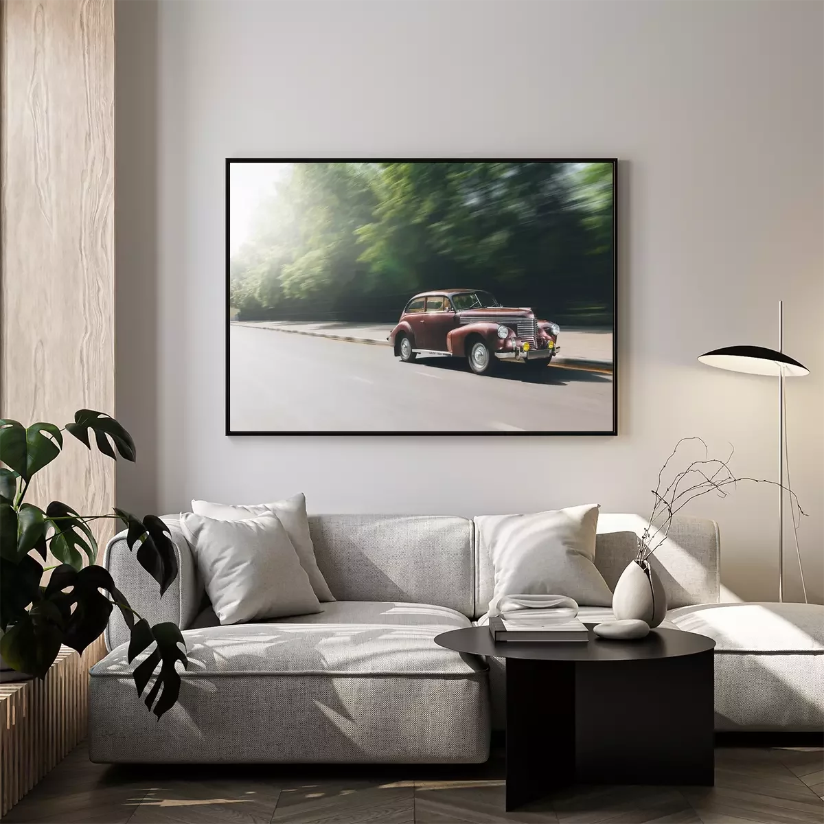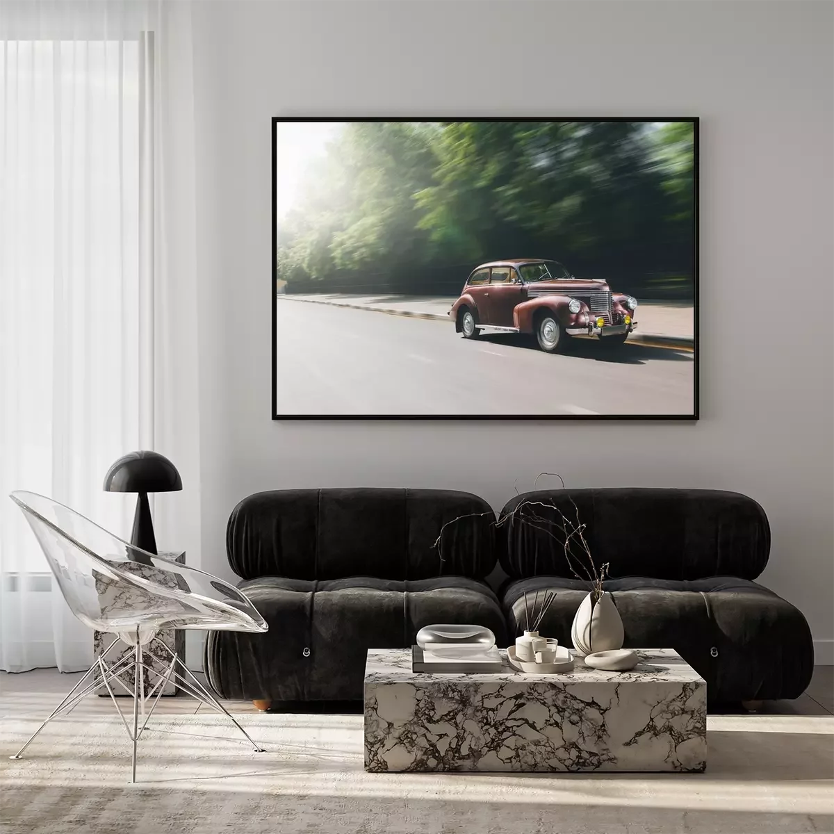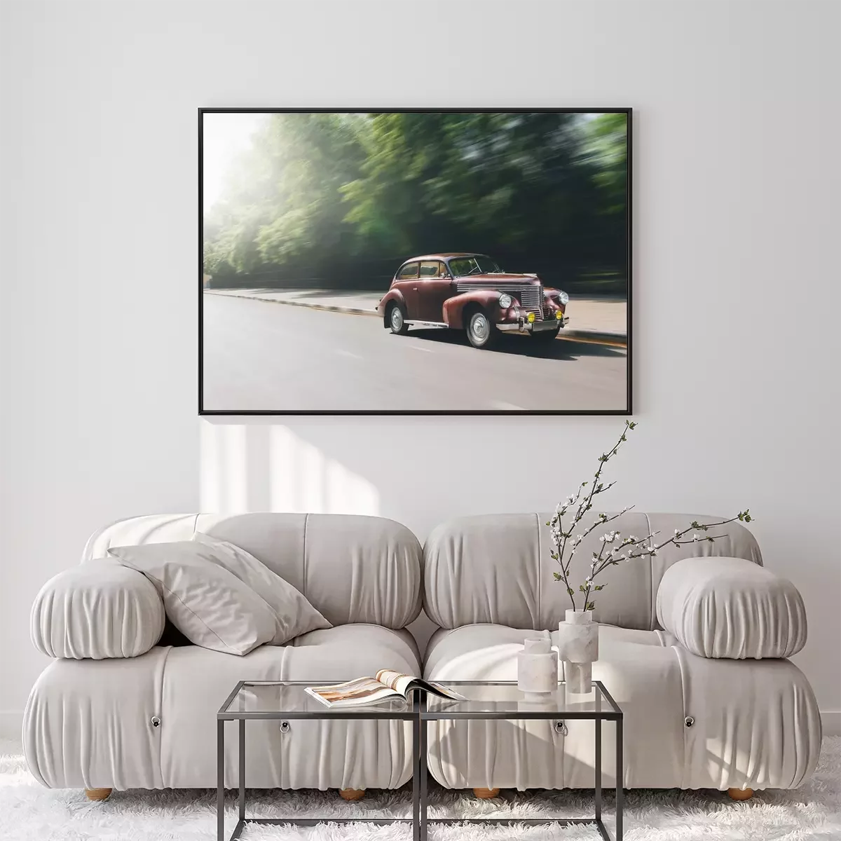 Poster  Rétro tour de vitesse de la voiture sur la route