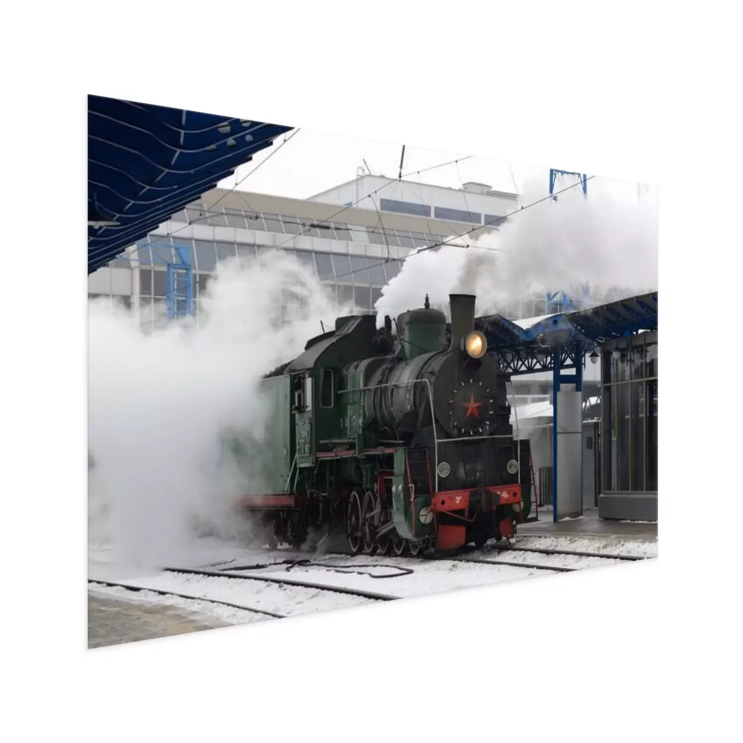 Poster  Retro, vapeur, train, station, Kiev, Ukraine