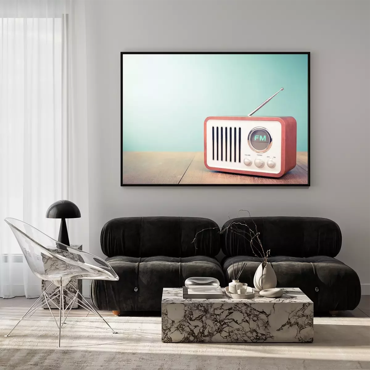 Poster : Rétro vieil fond de mouton de radio front vert. Photo filtrée style vintage