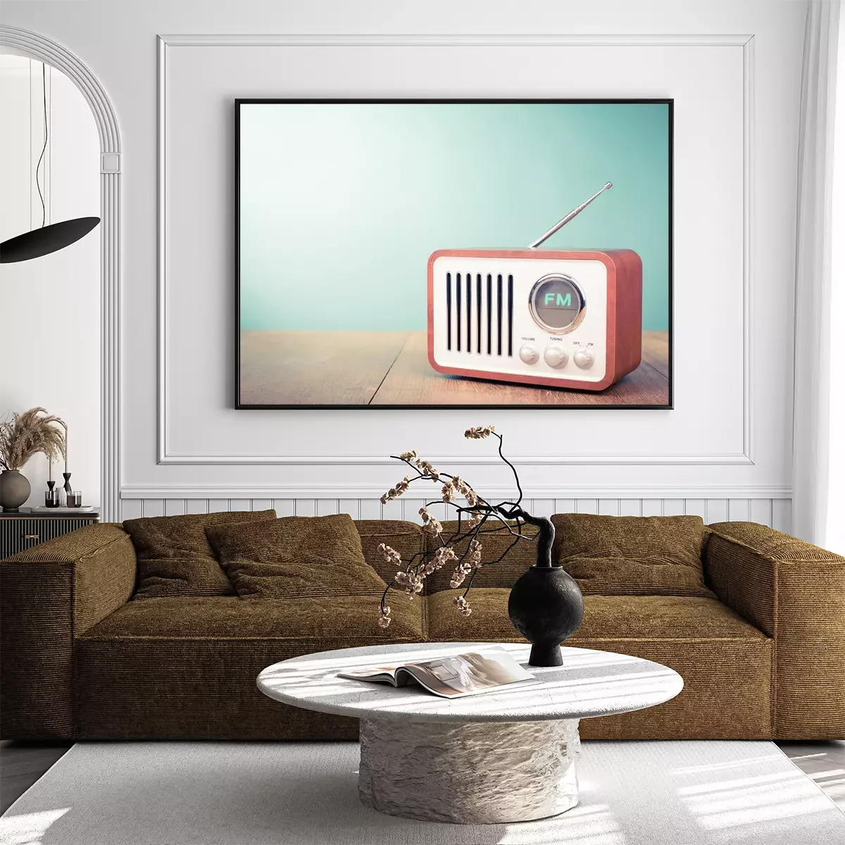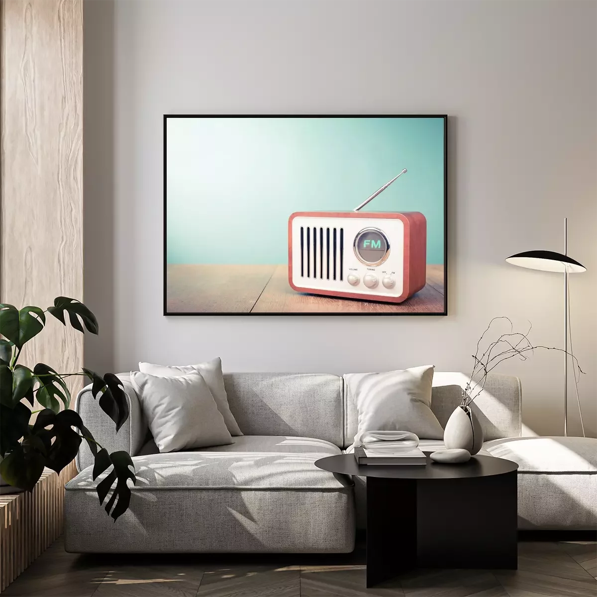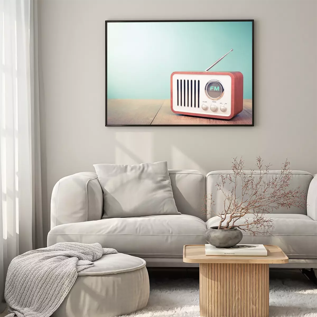 Poster  Rétro vieil fond de mouton de radio front vert. Photo filtrée style vintage
