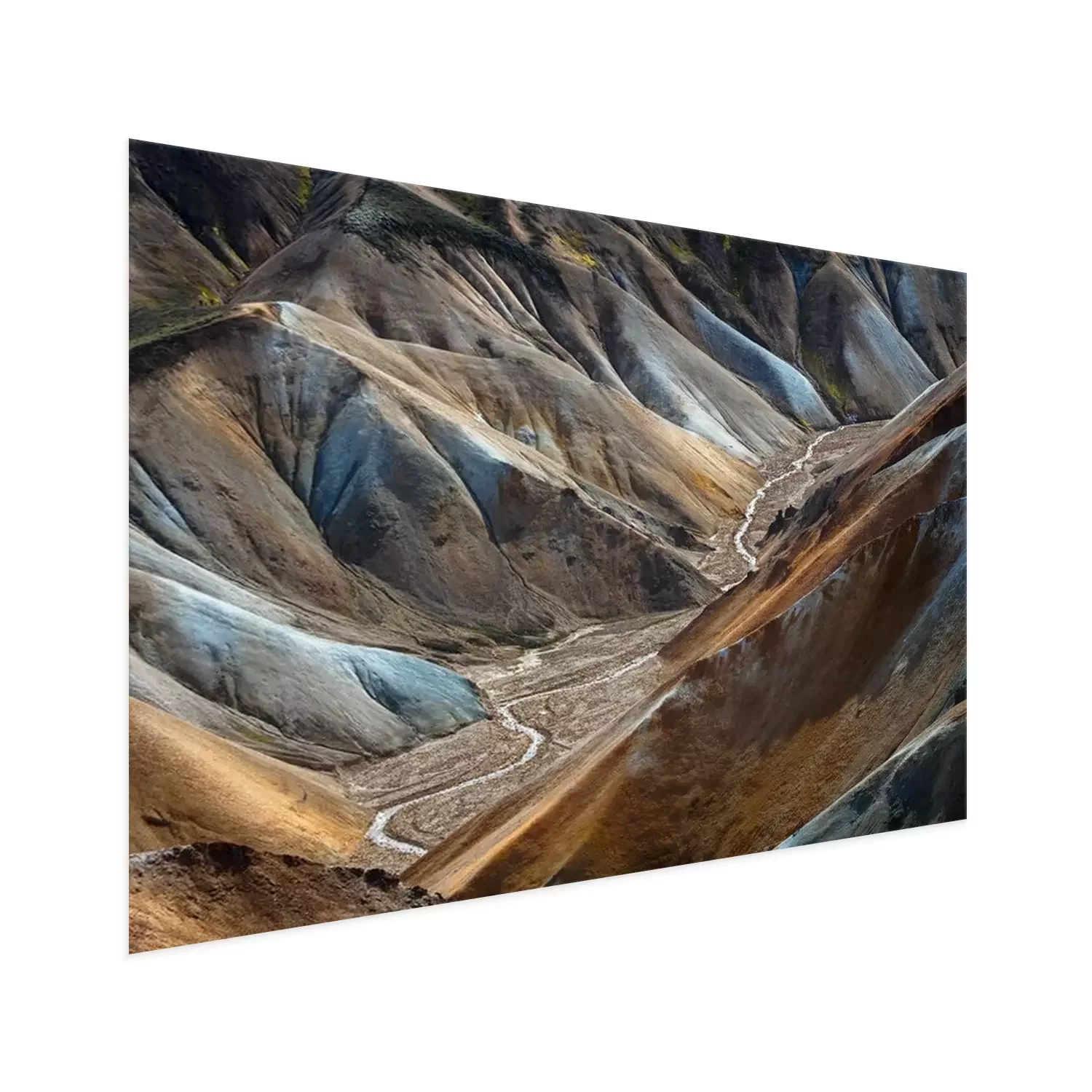 Poster  River along a Valley in Landmannalaugar among colorful mountains, Iceland