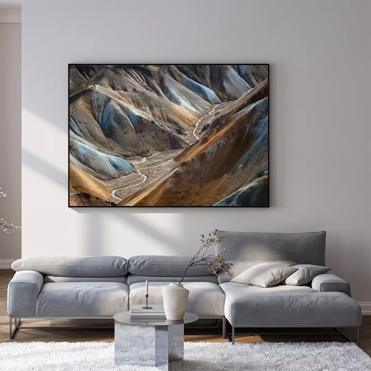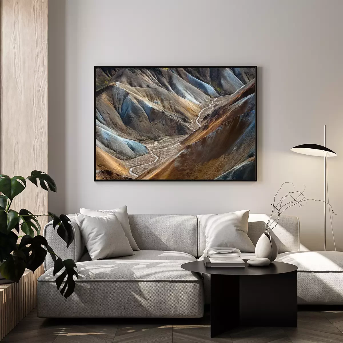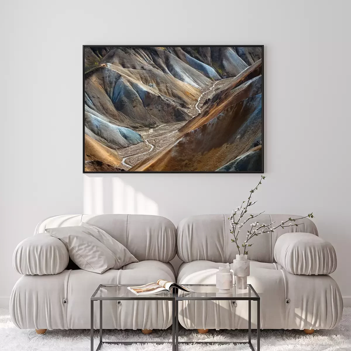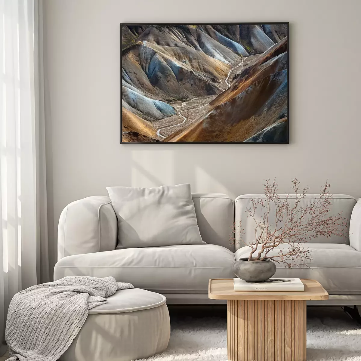 Poster : River along a Valley in Landmannalaugar among colorful mountains, Iceland