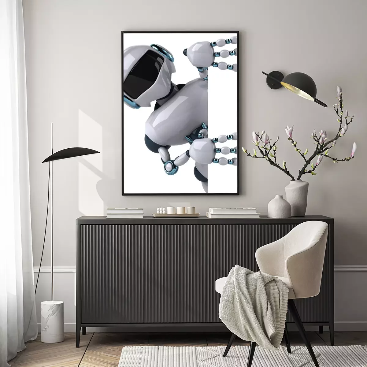 Poster : Robot panneau et blanc