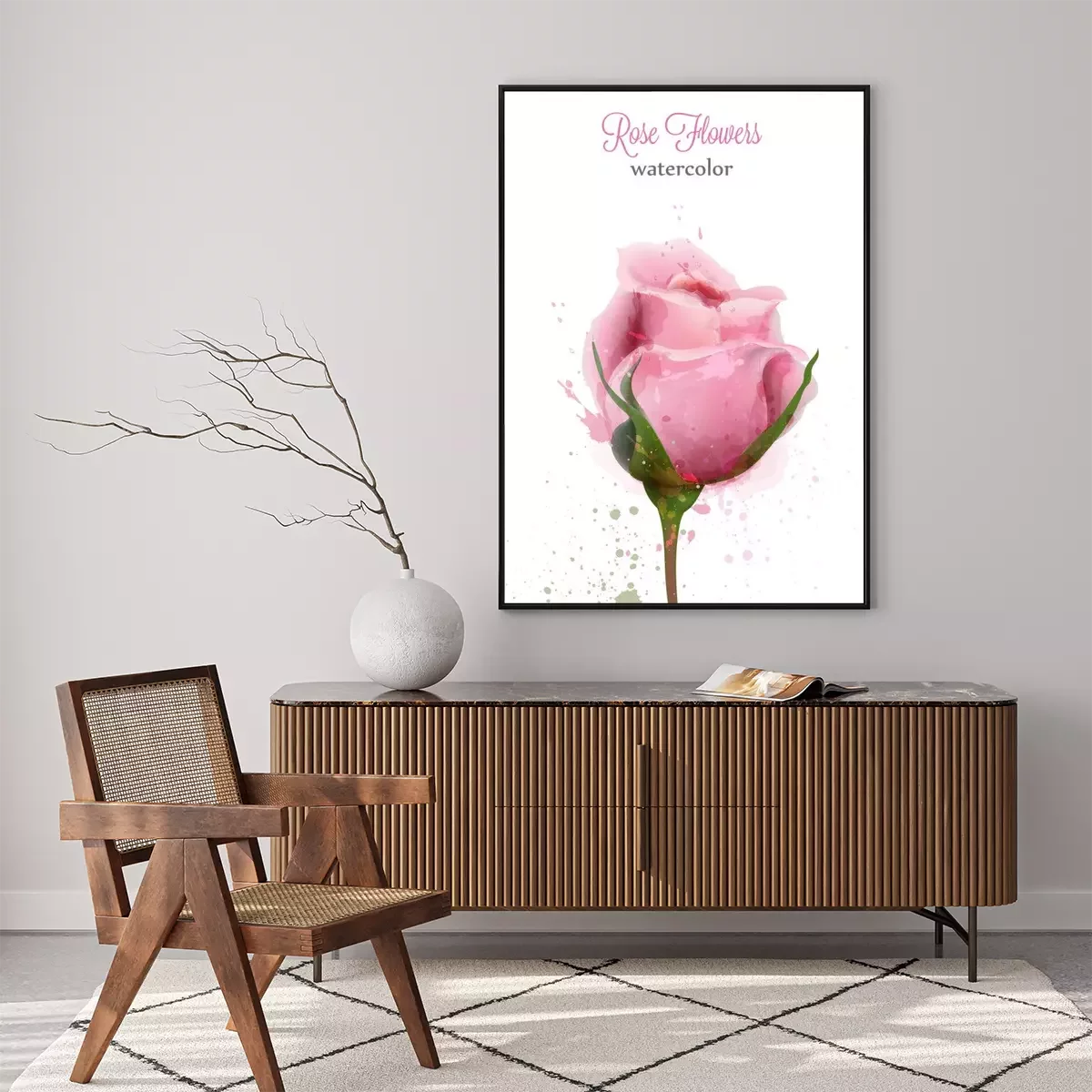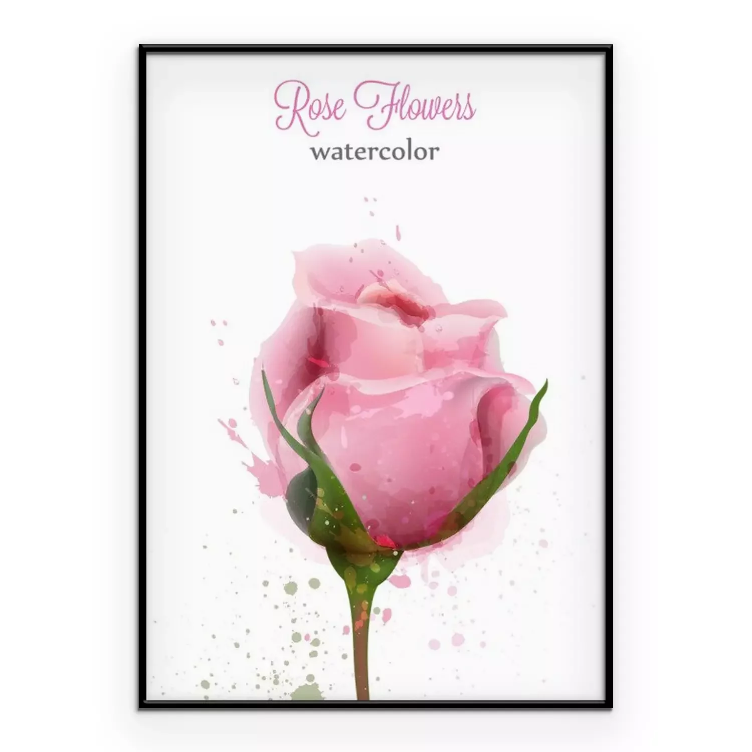Poster  Rose aquarelle éclaboussée d'éclaboussures de peinture